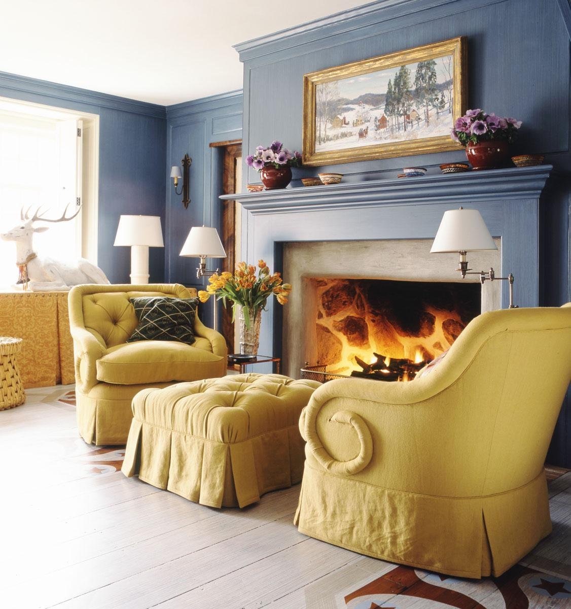 Камин с креслами в интерьере