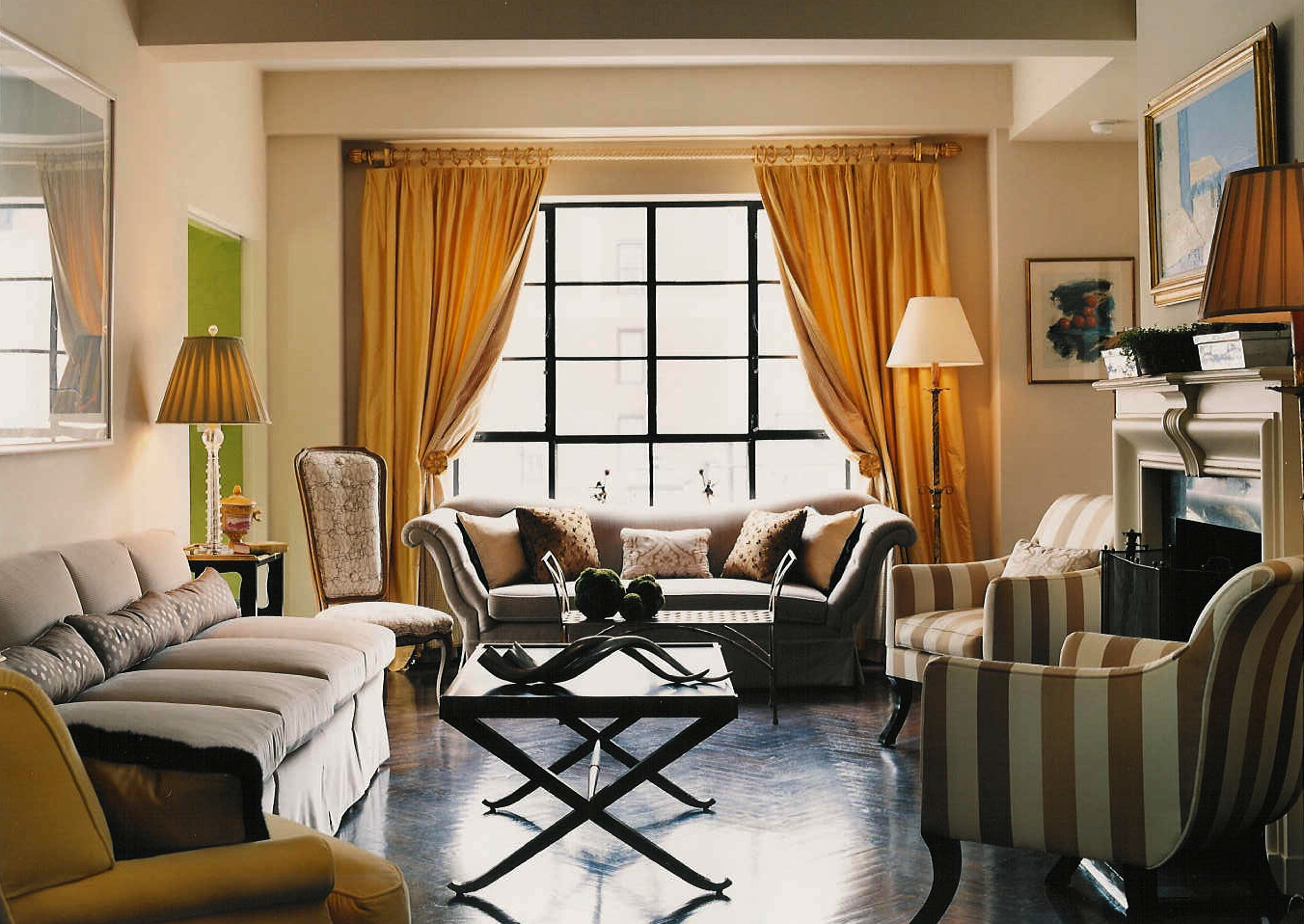 Шторы цвета охры в интерьере