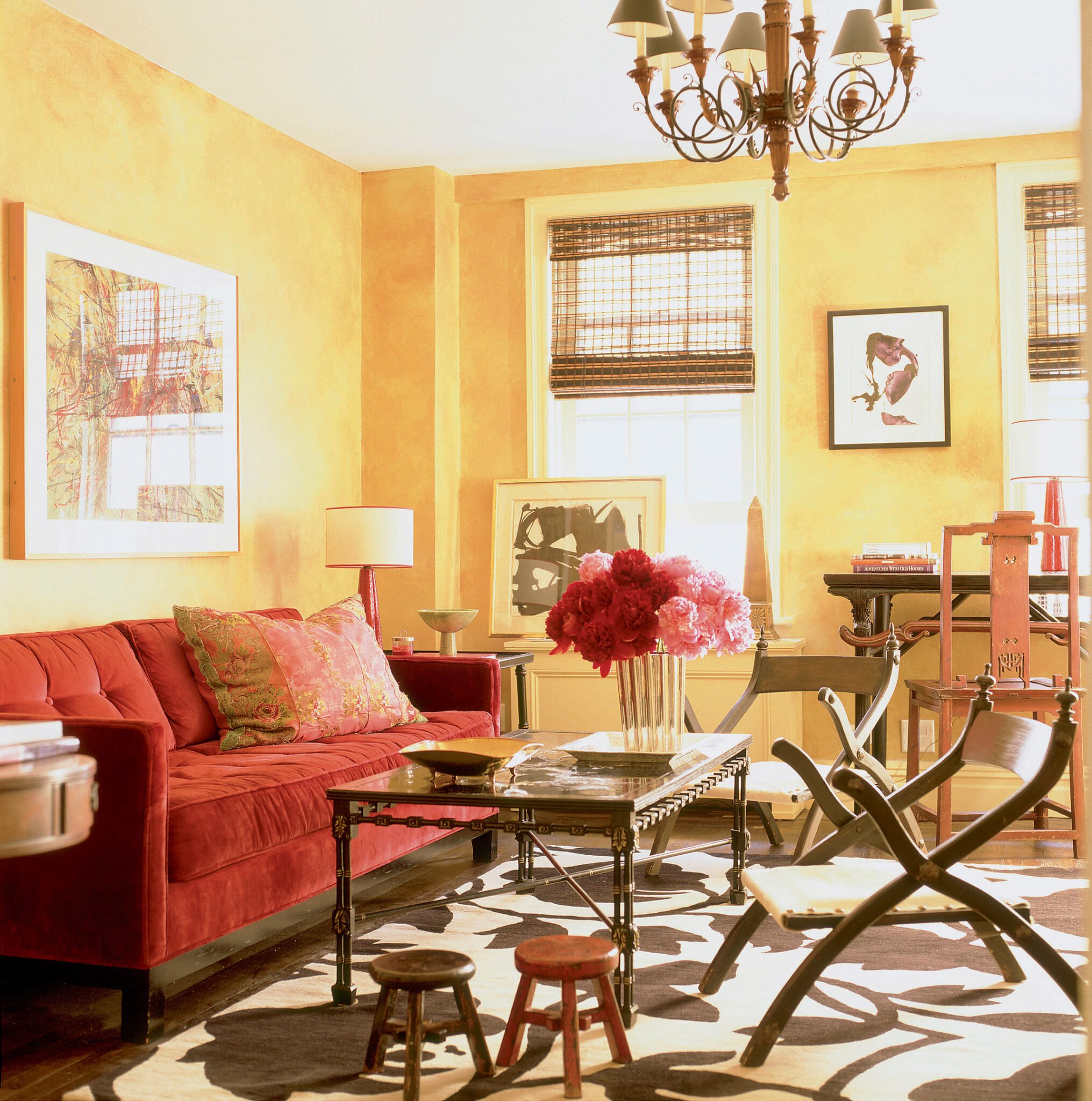 Гостиная с желтыми стенами