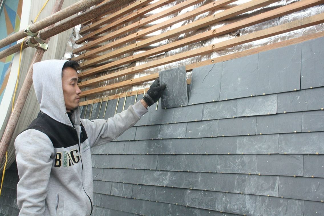 Монтаж плоского шифера на фасад