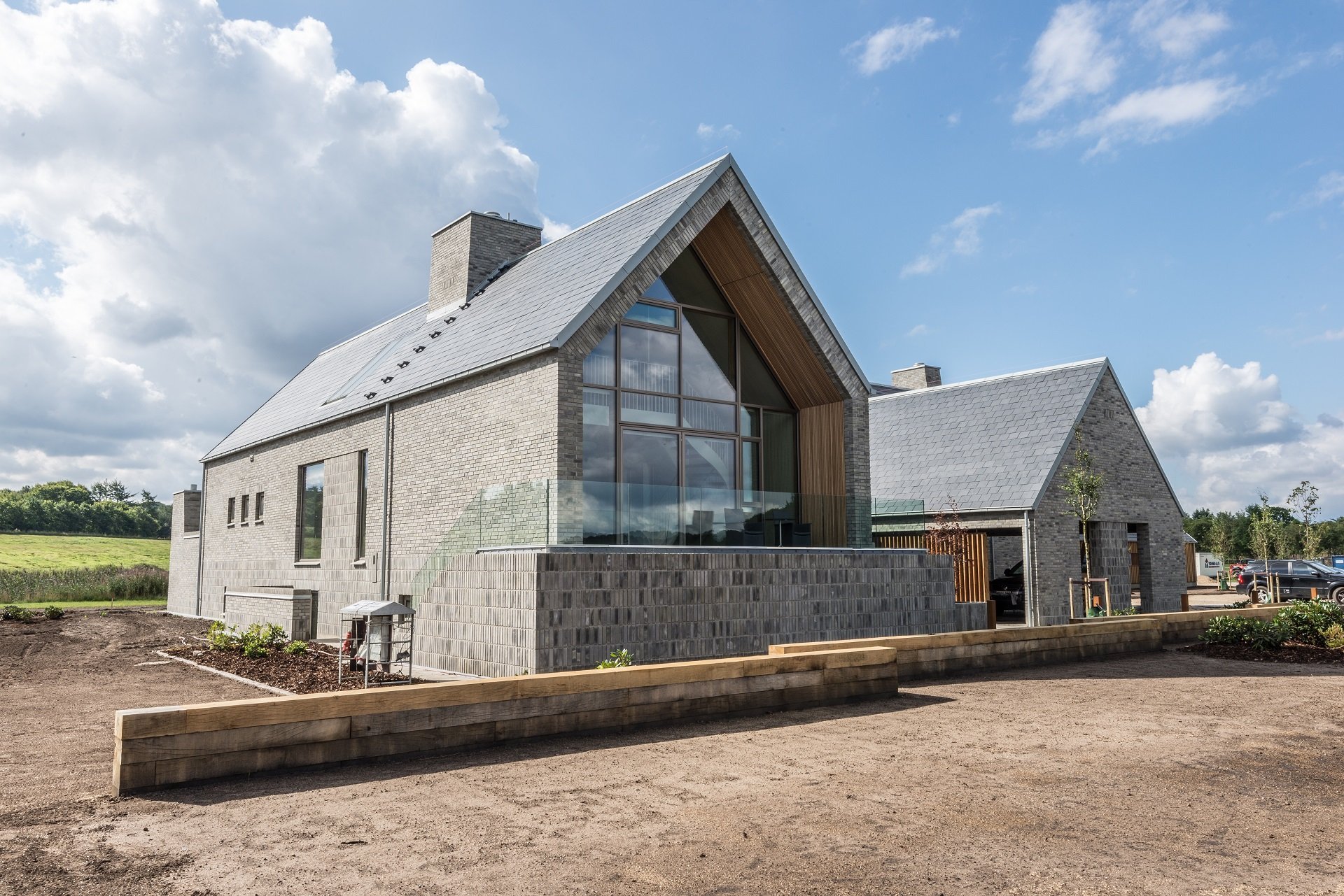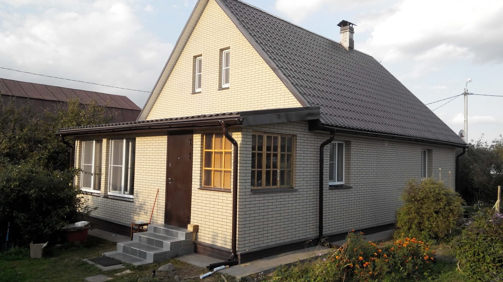 Кирпичный дом с шиферной крышей