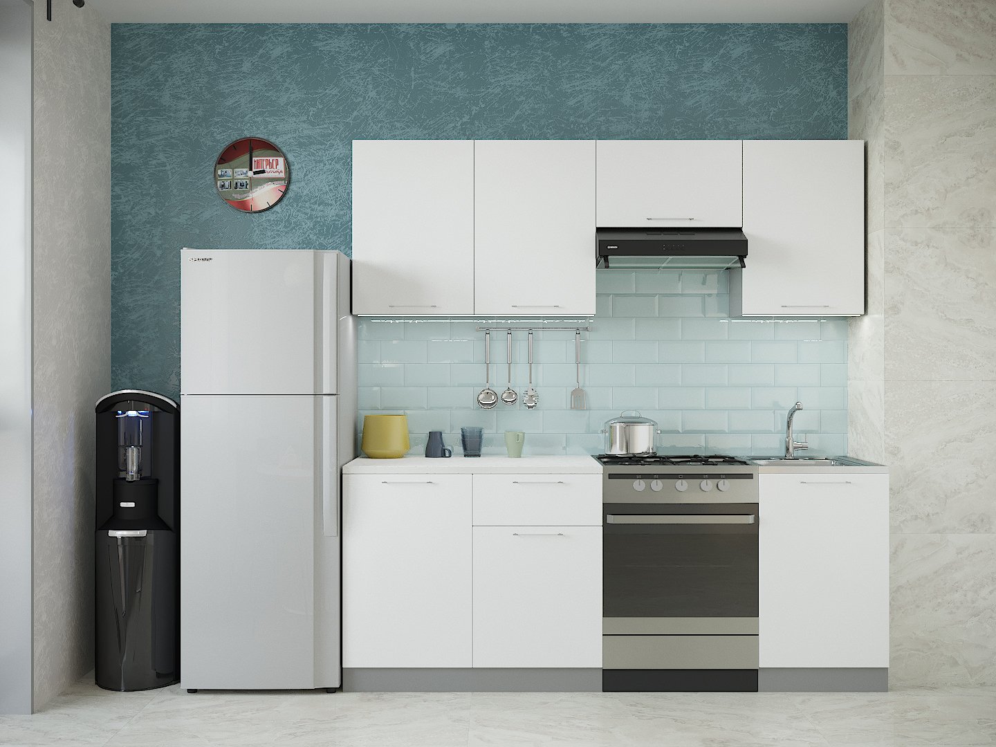 Кухня София 3d 1.8 м белый/белый-бирюза