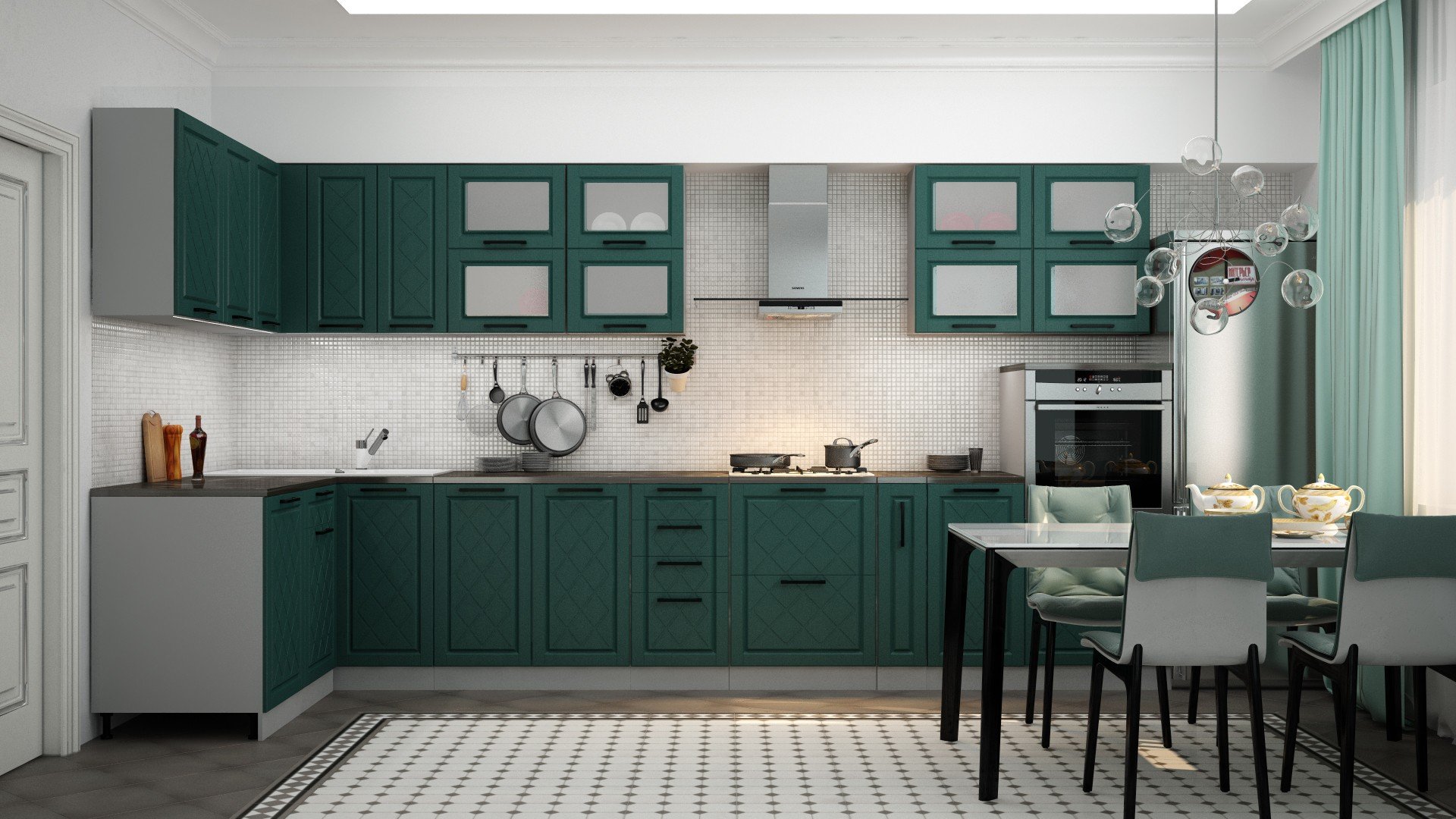 Кухня София олива бирюза