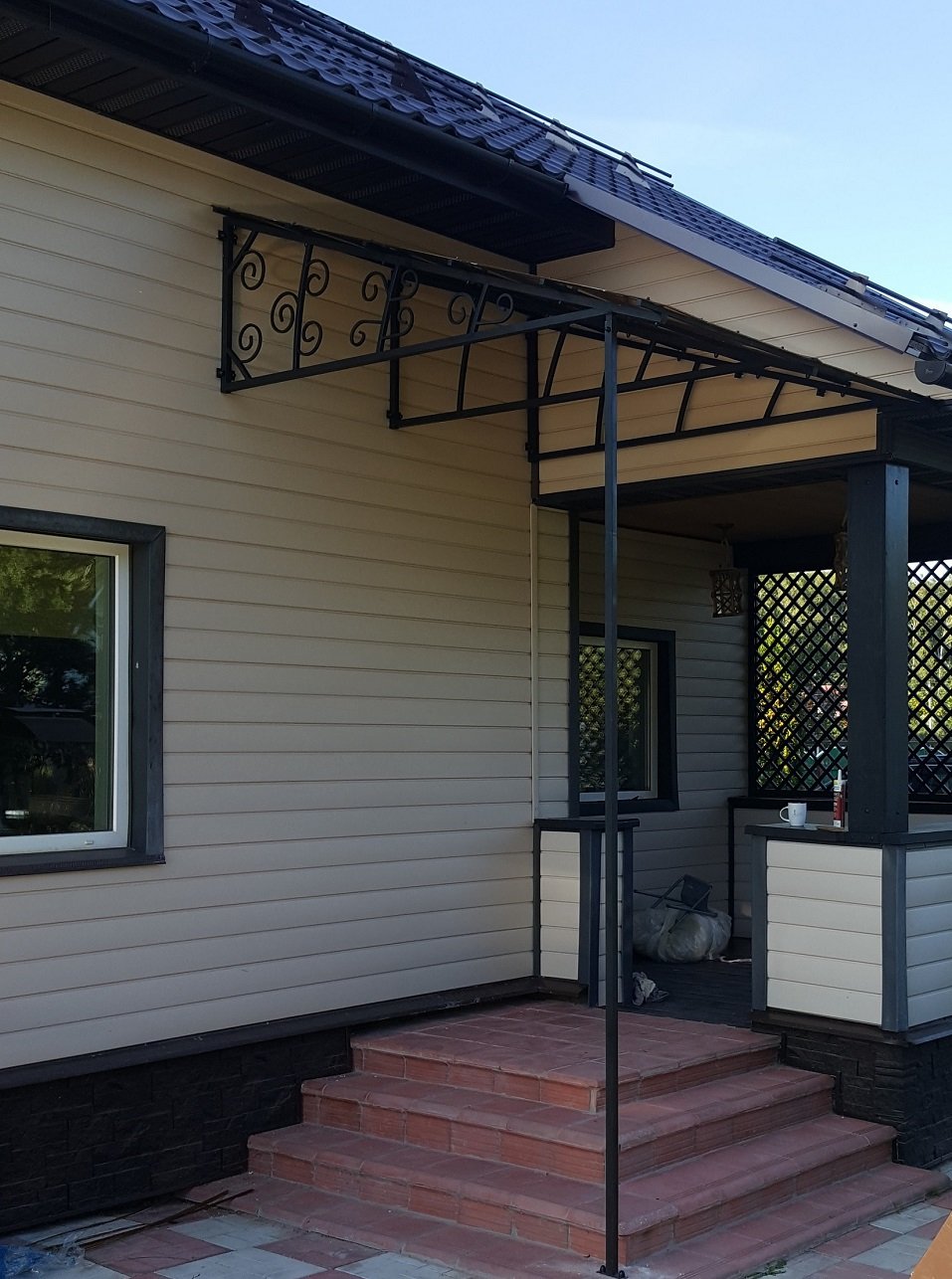 Козырёк над крыльцом из металлочерепицы