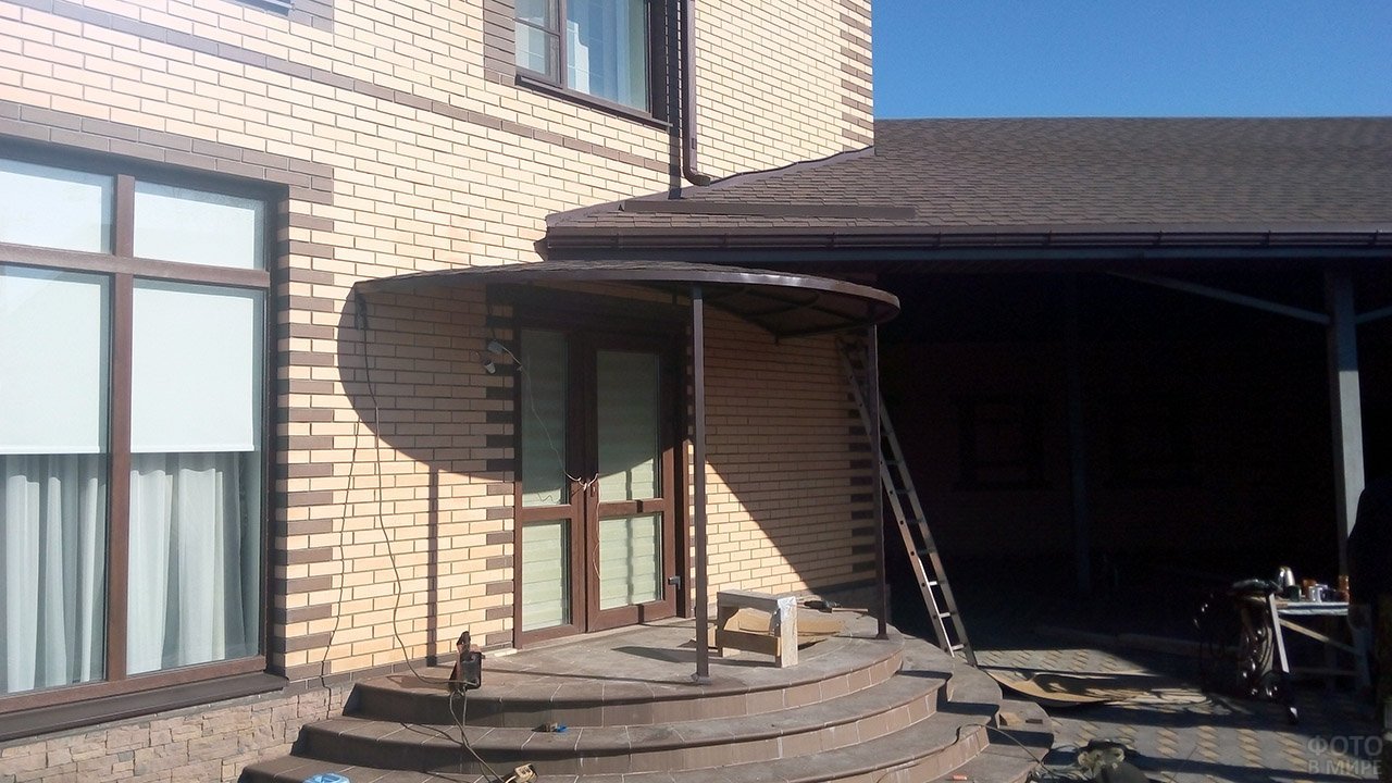 Крыльцо для частного дома с навесом