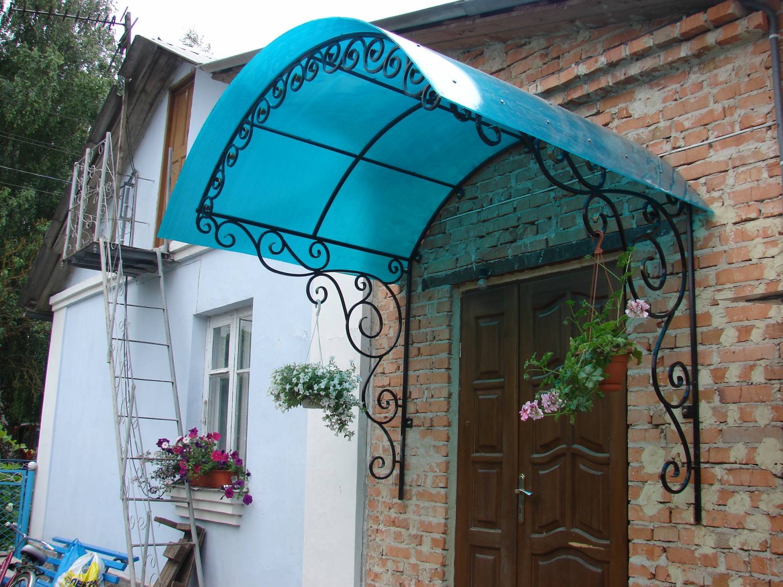 Кованый навес над террасой