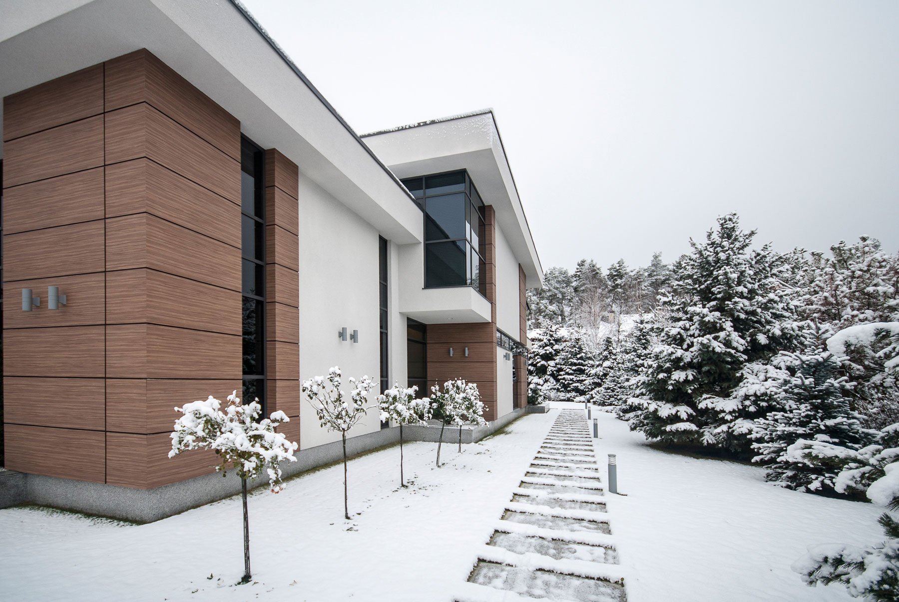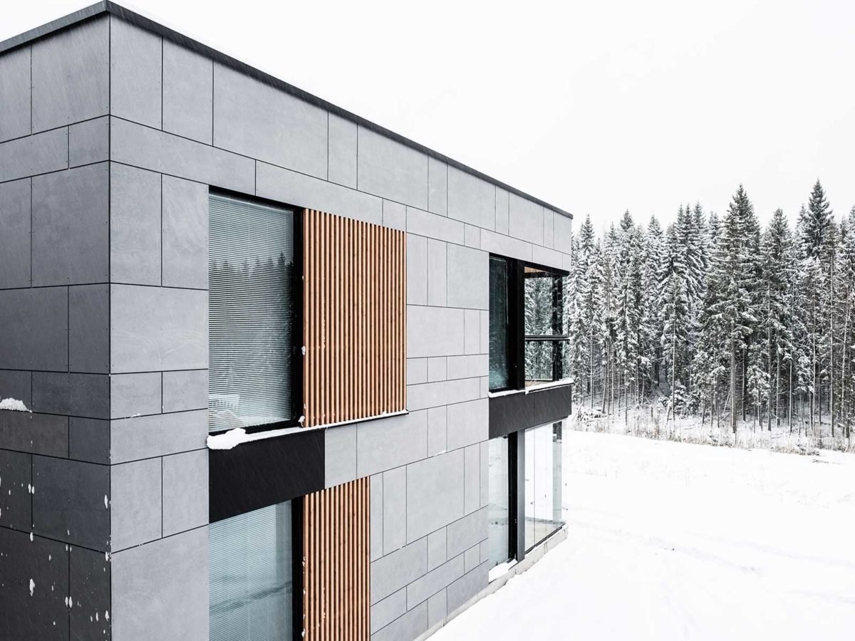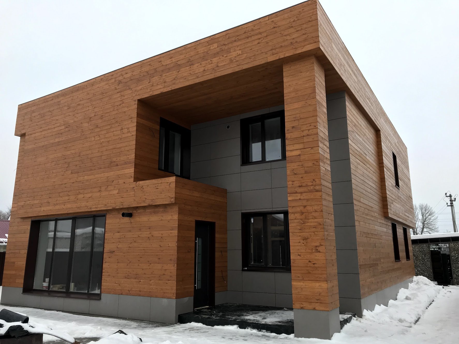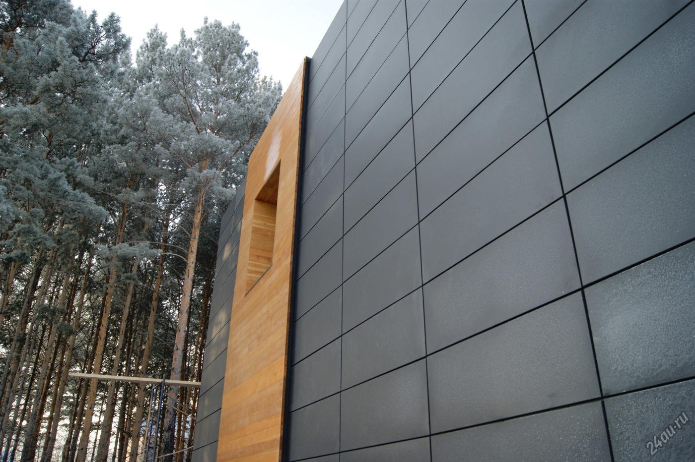 Фасад керамогранит и дерево