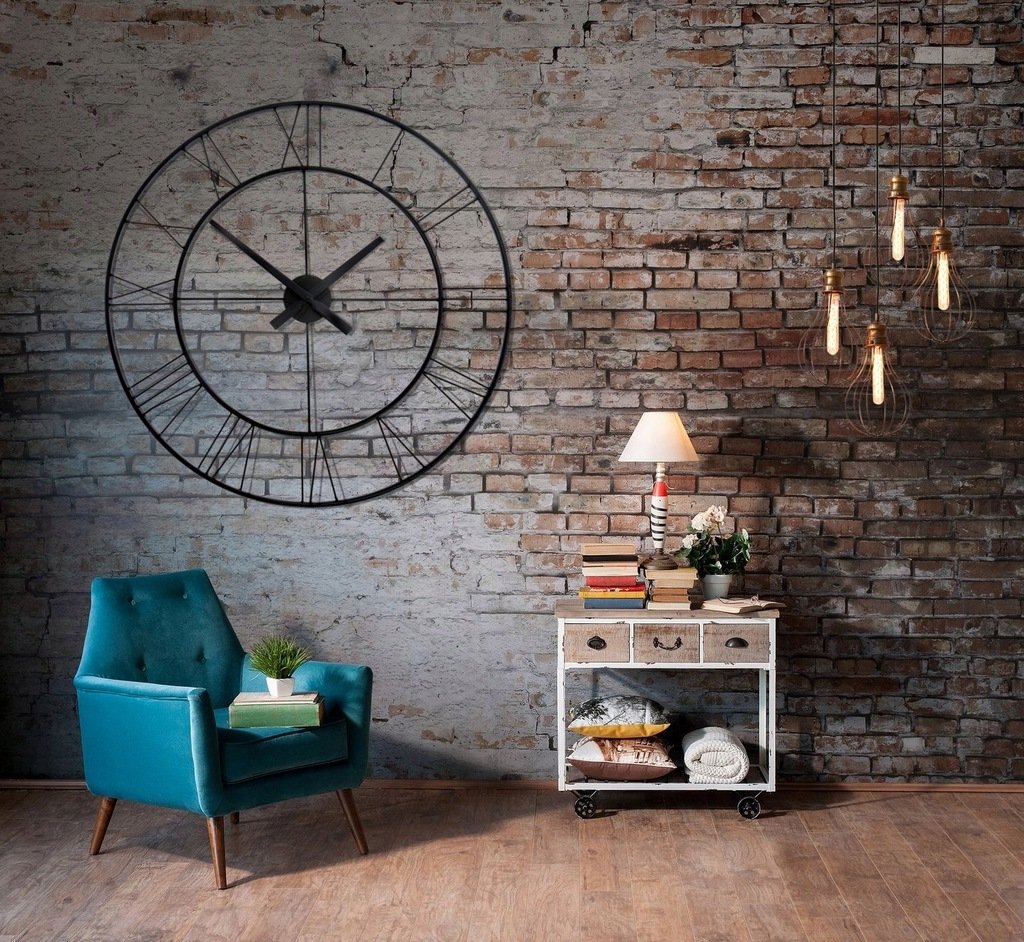 Часы лофт настенные в интерьере