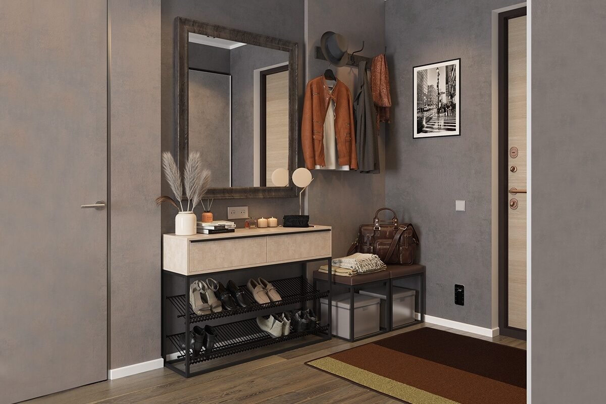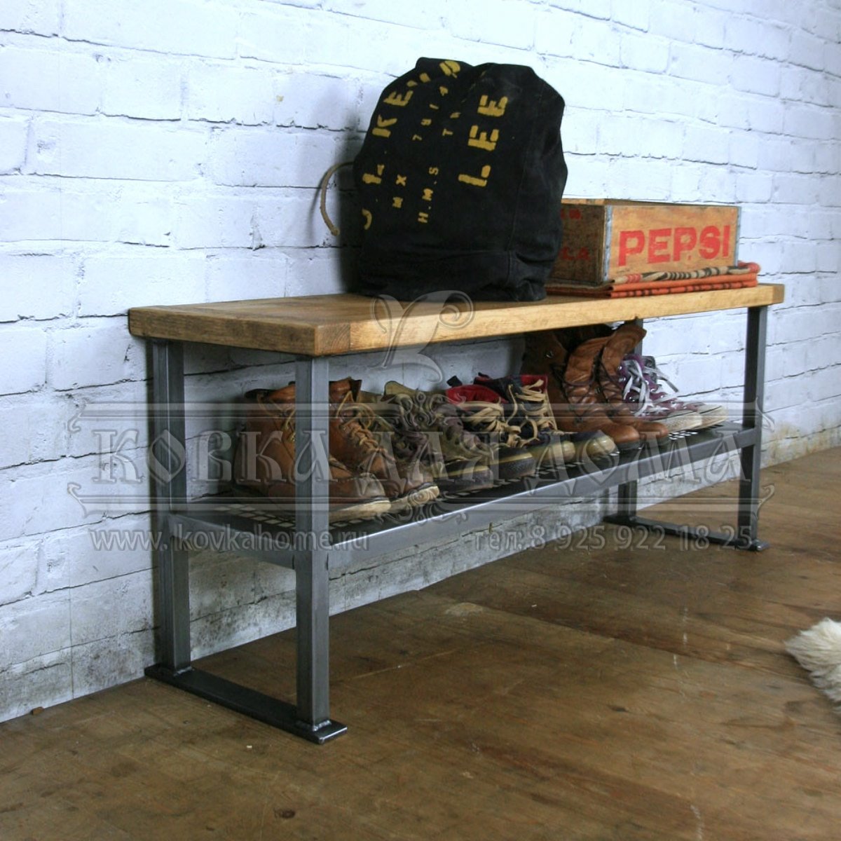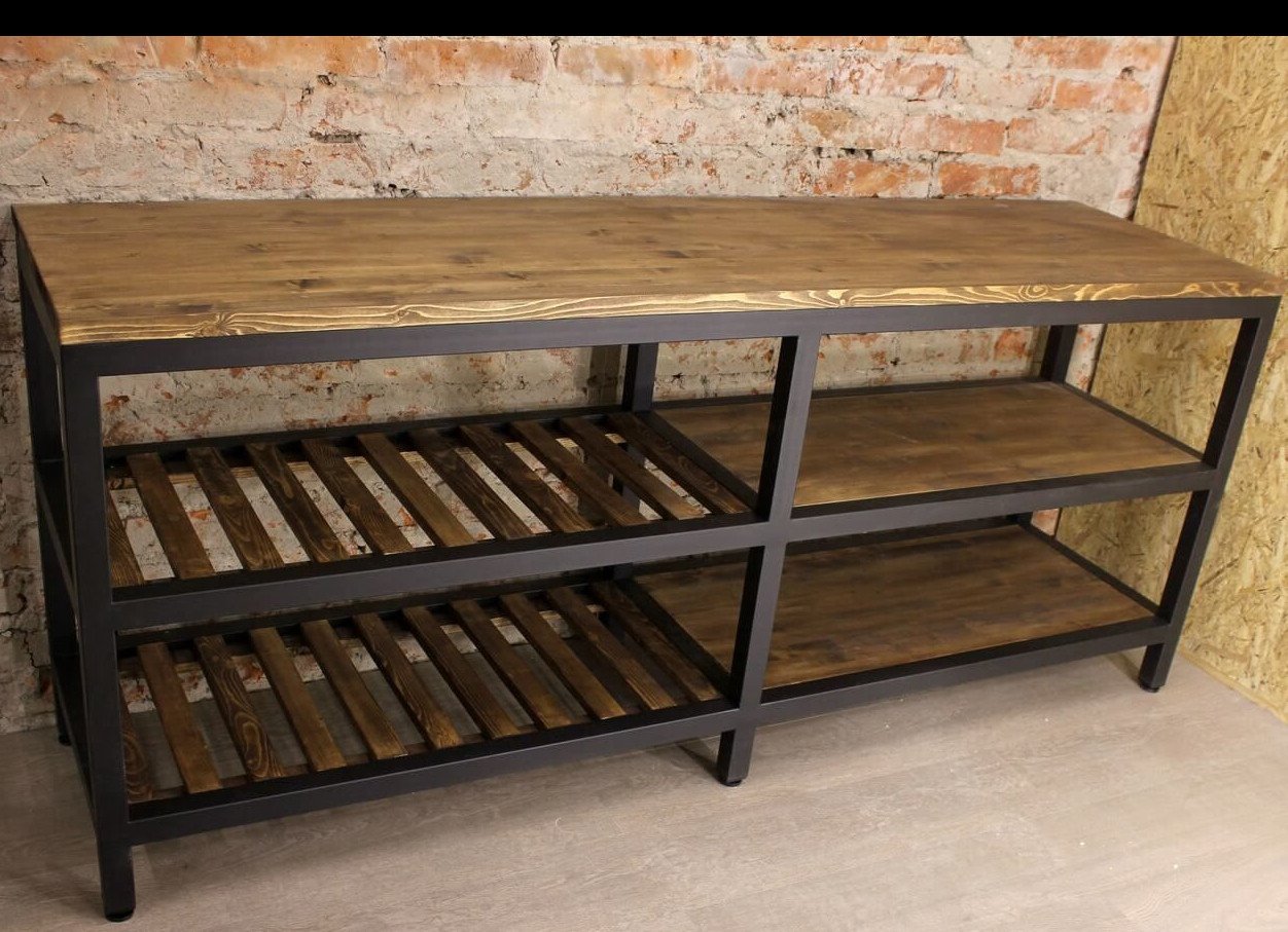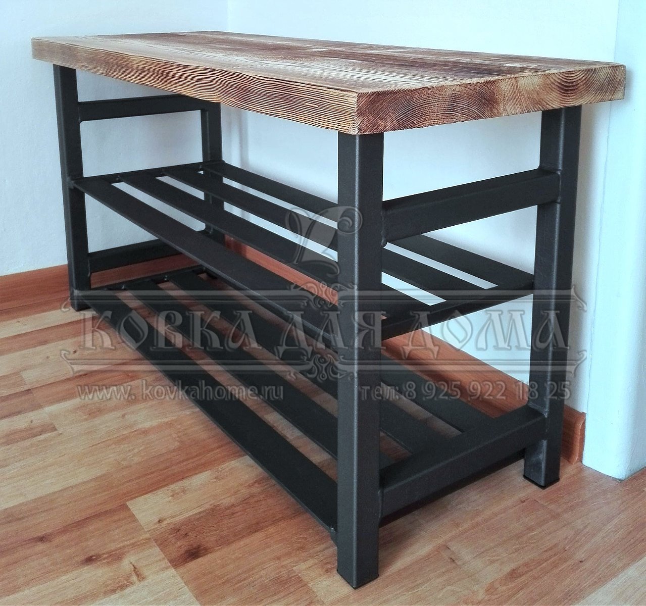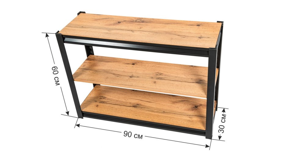 Wood&Steel / тумба для обуви Wood&Steel в стиле лофт,3 яруса, 60x90x30 см