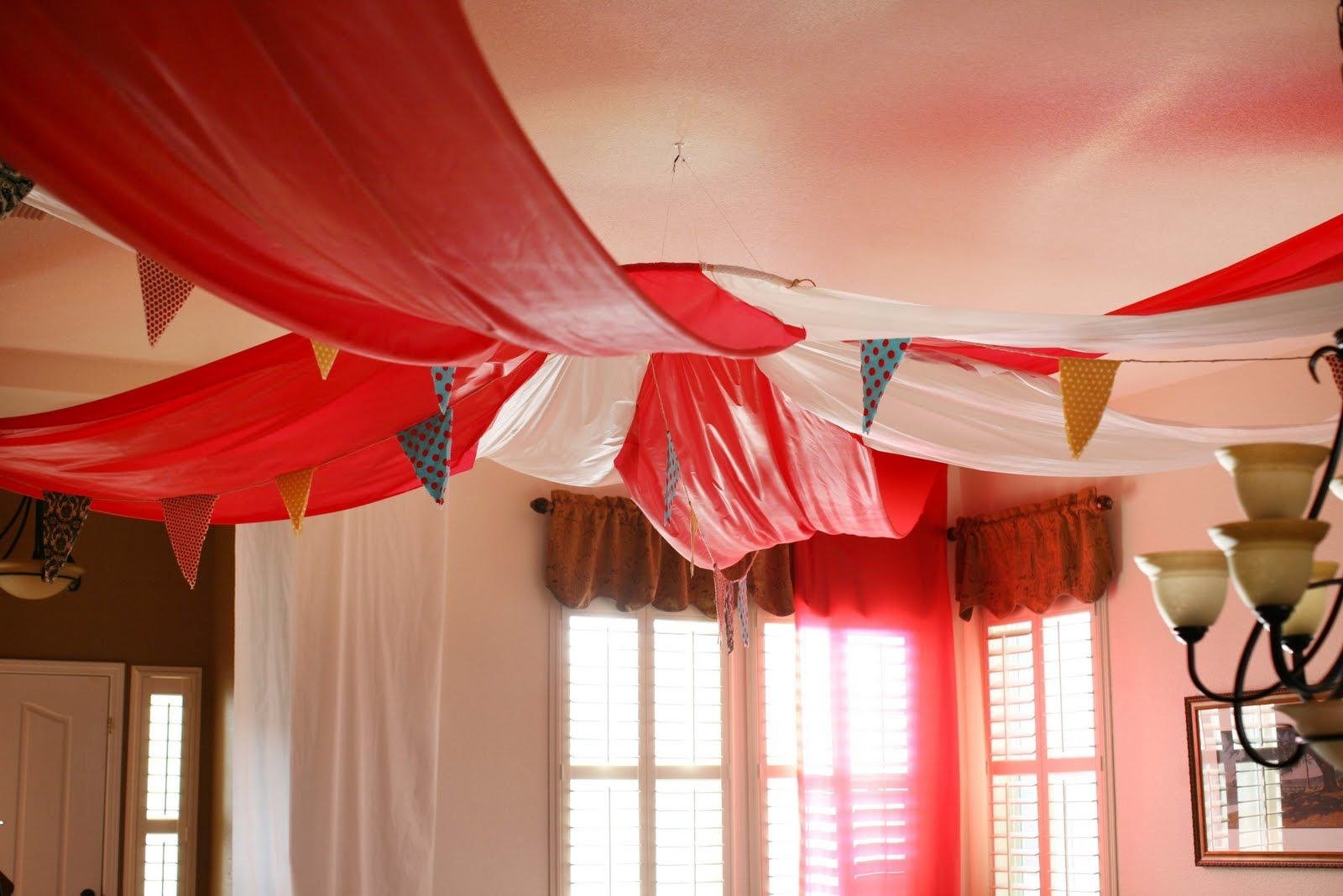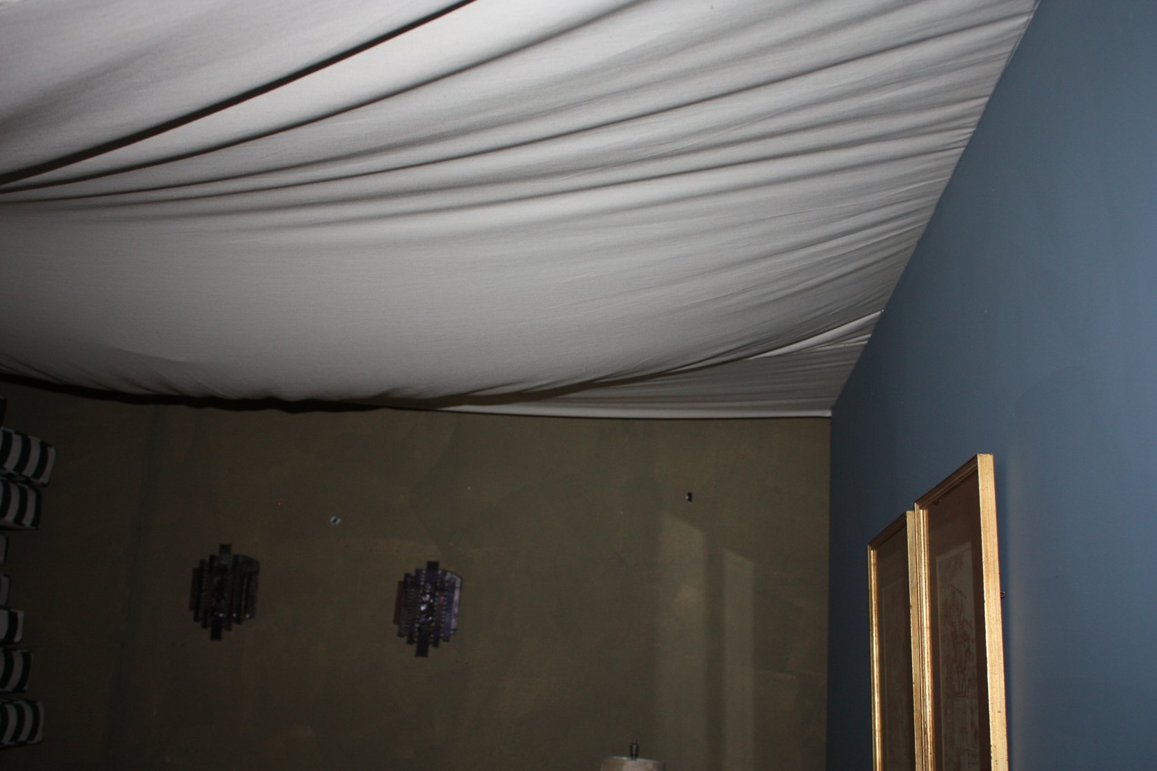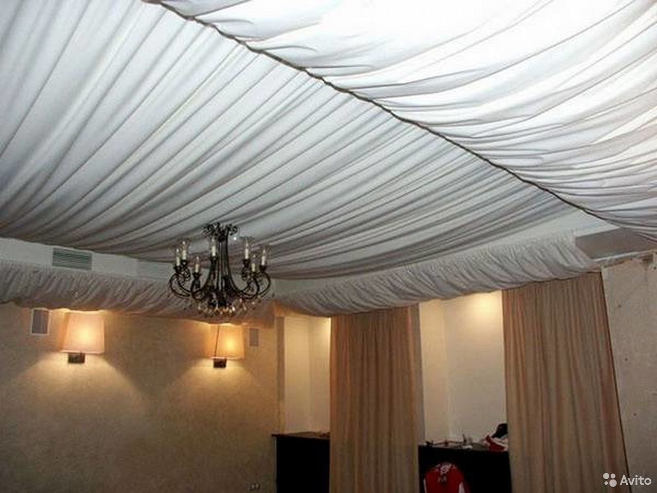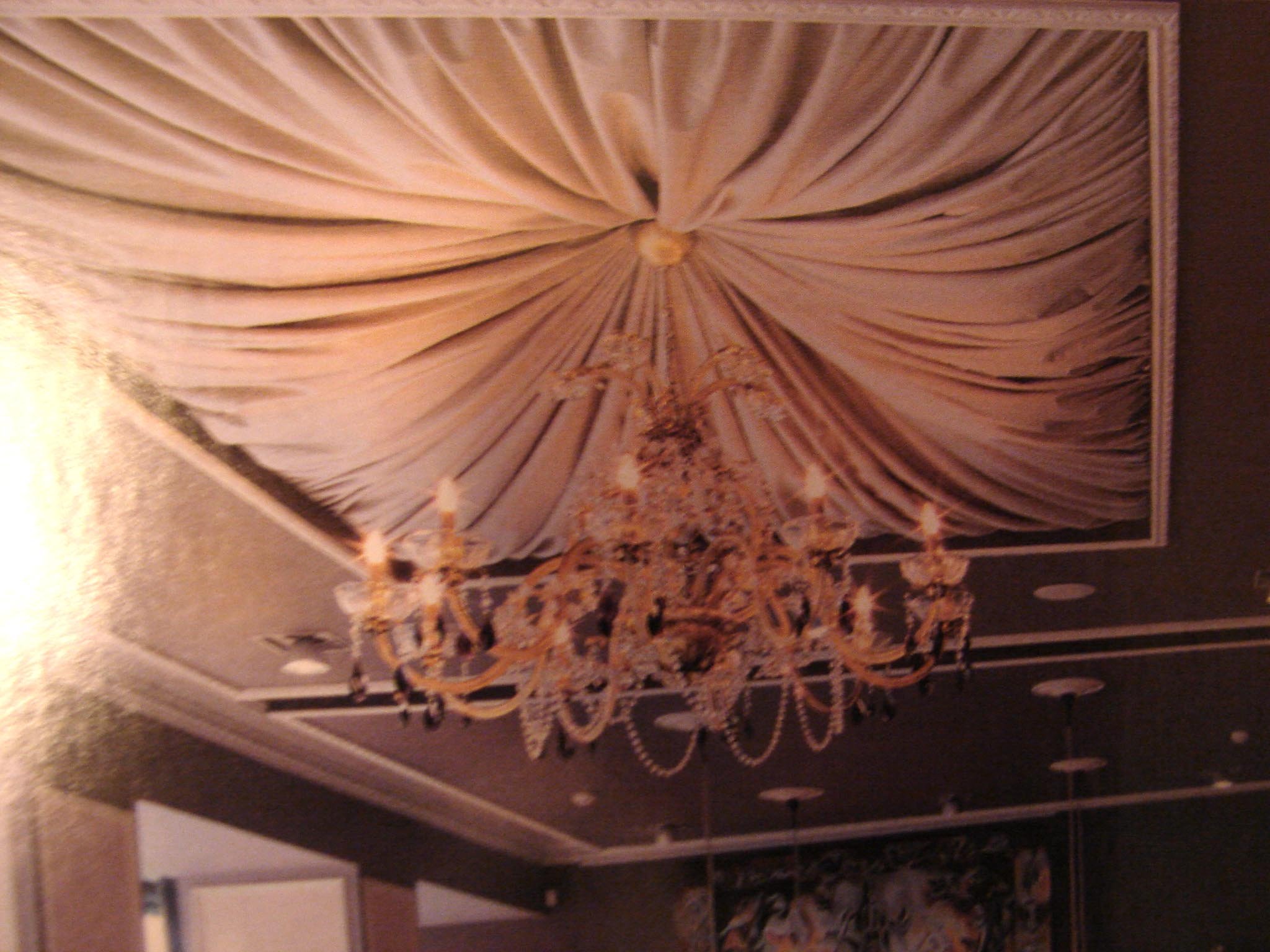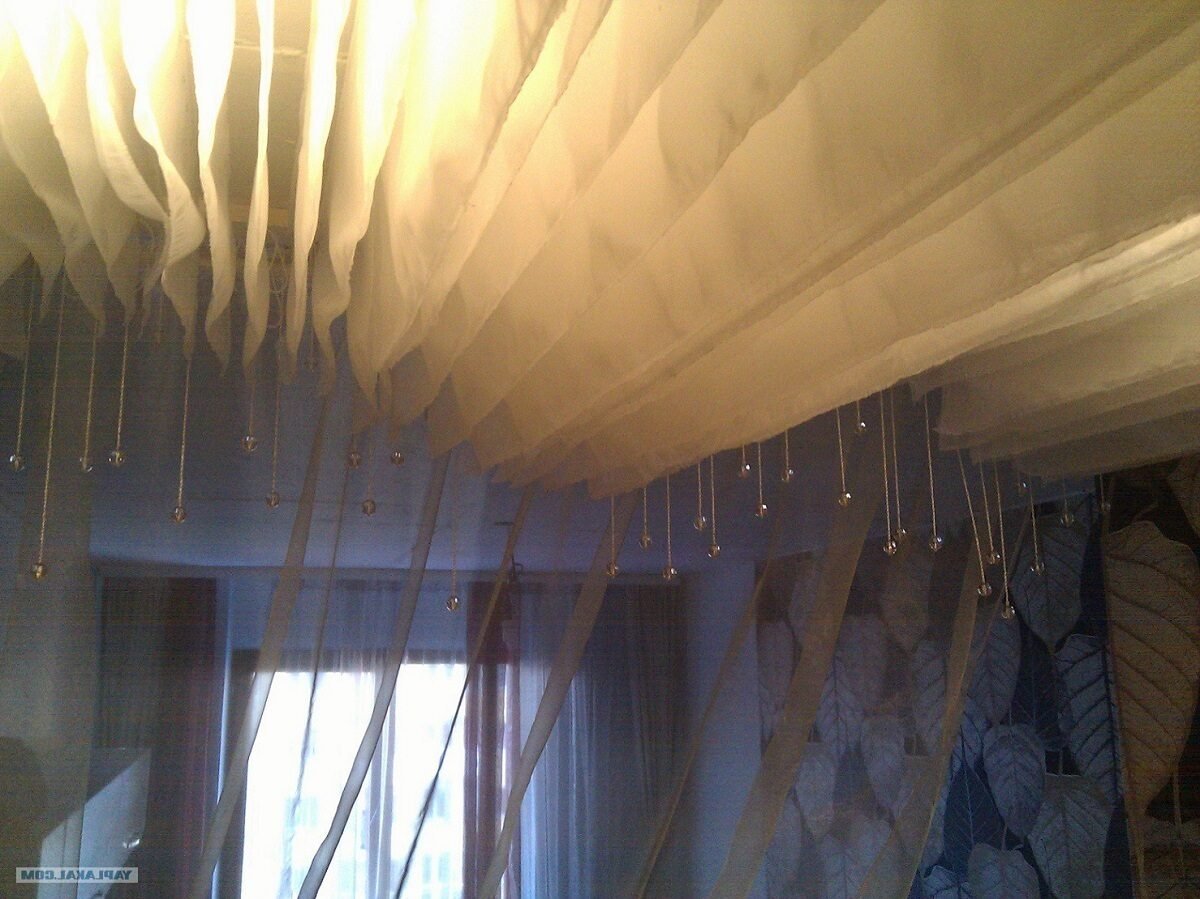 Украшение потолка тканью