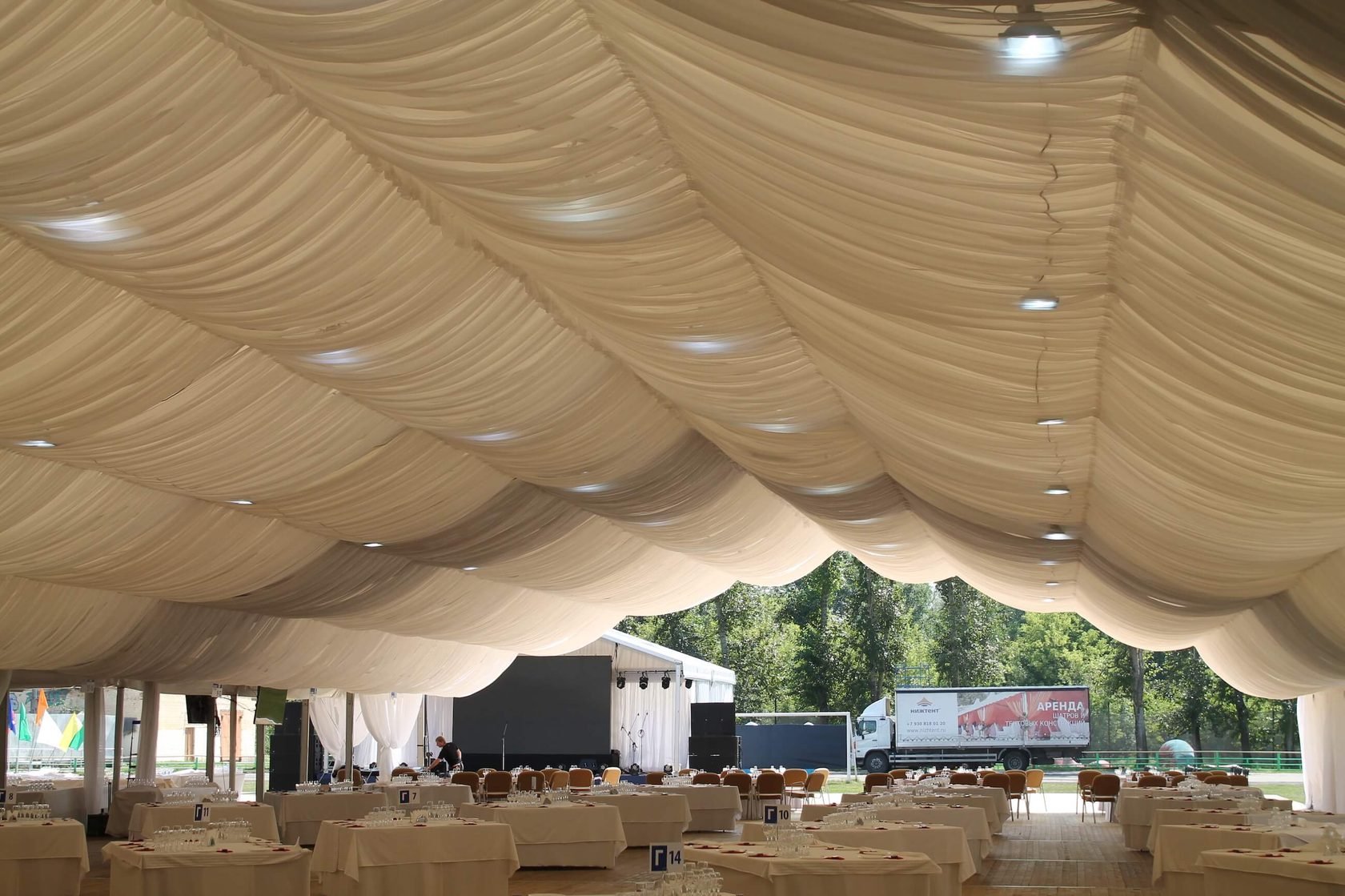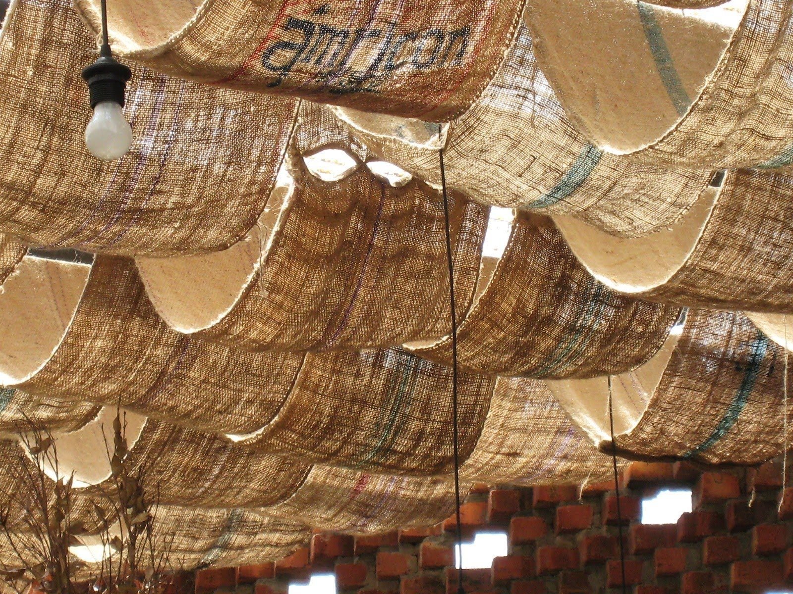 Потолок из ткани в кафе