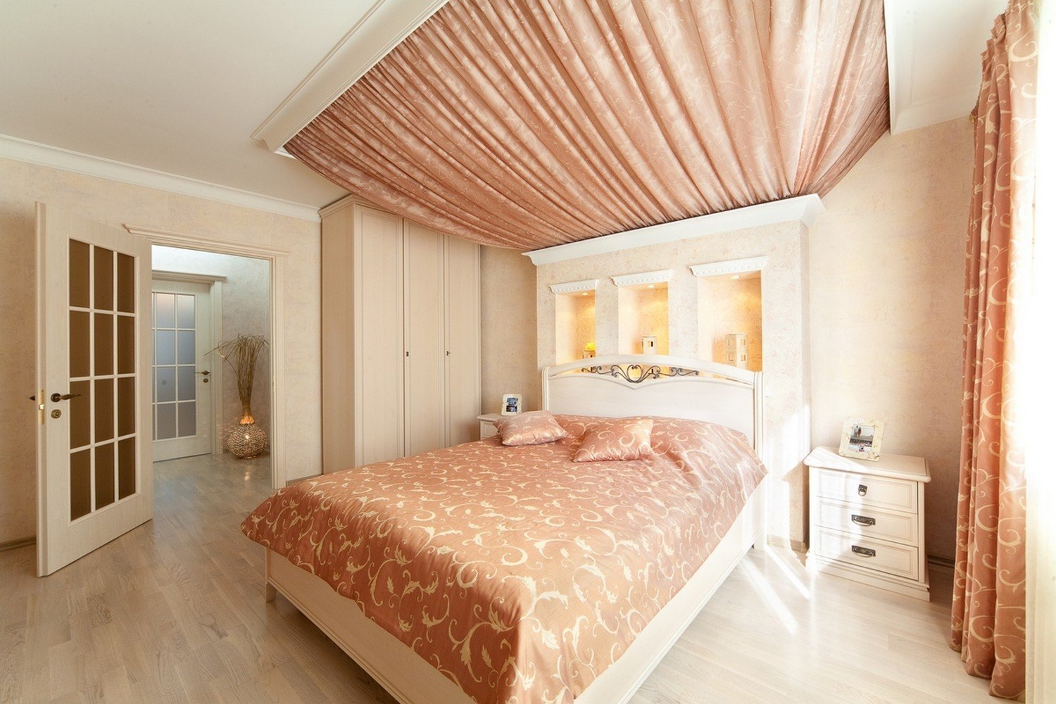 Потолок из ткани в спальне