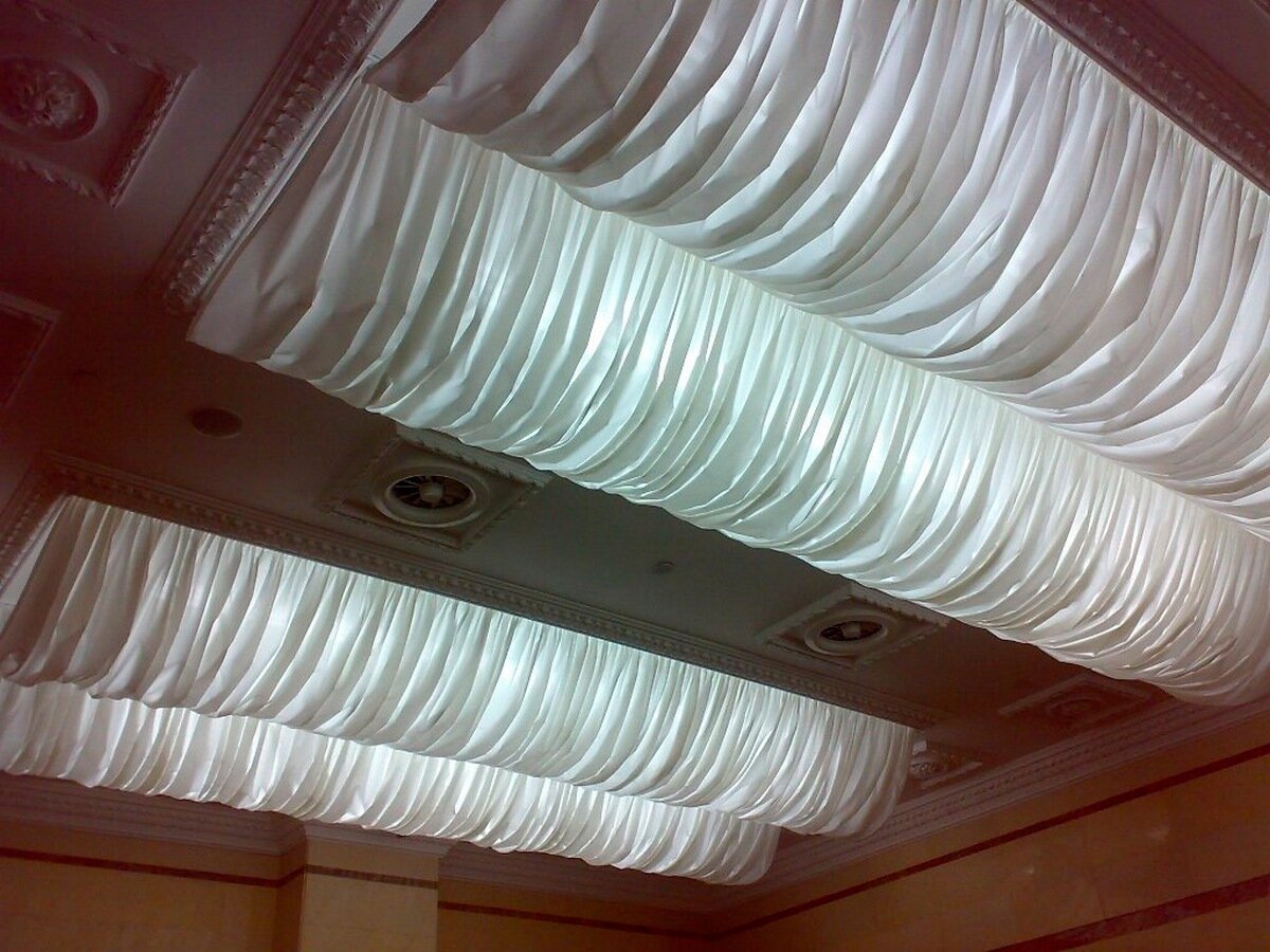 Декорация потолка тканью