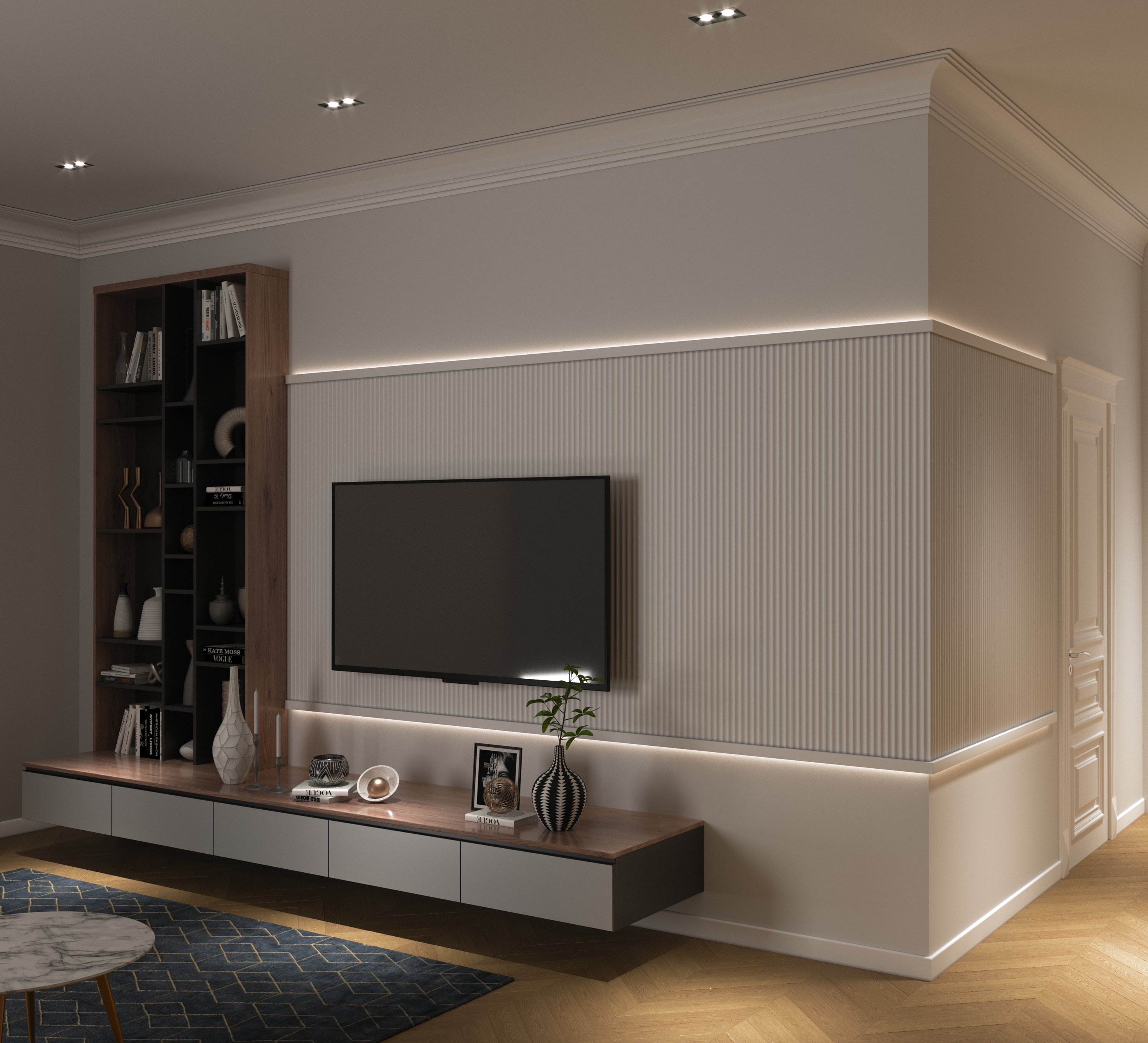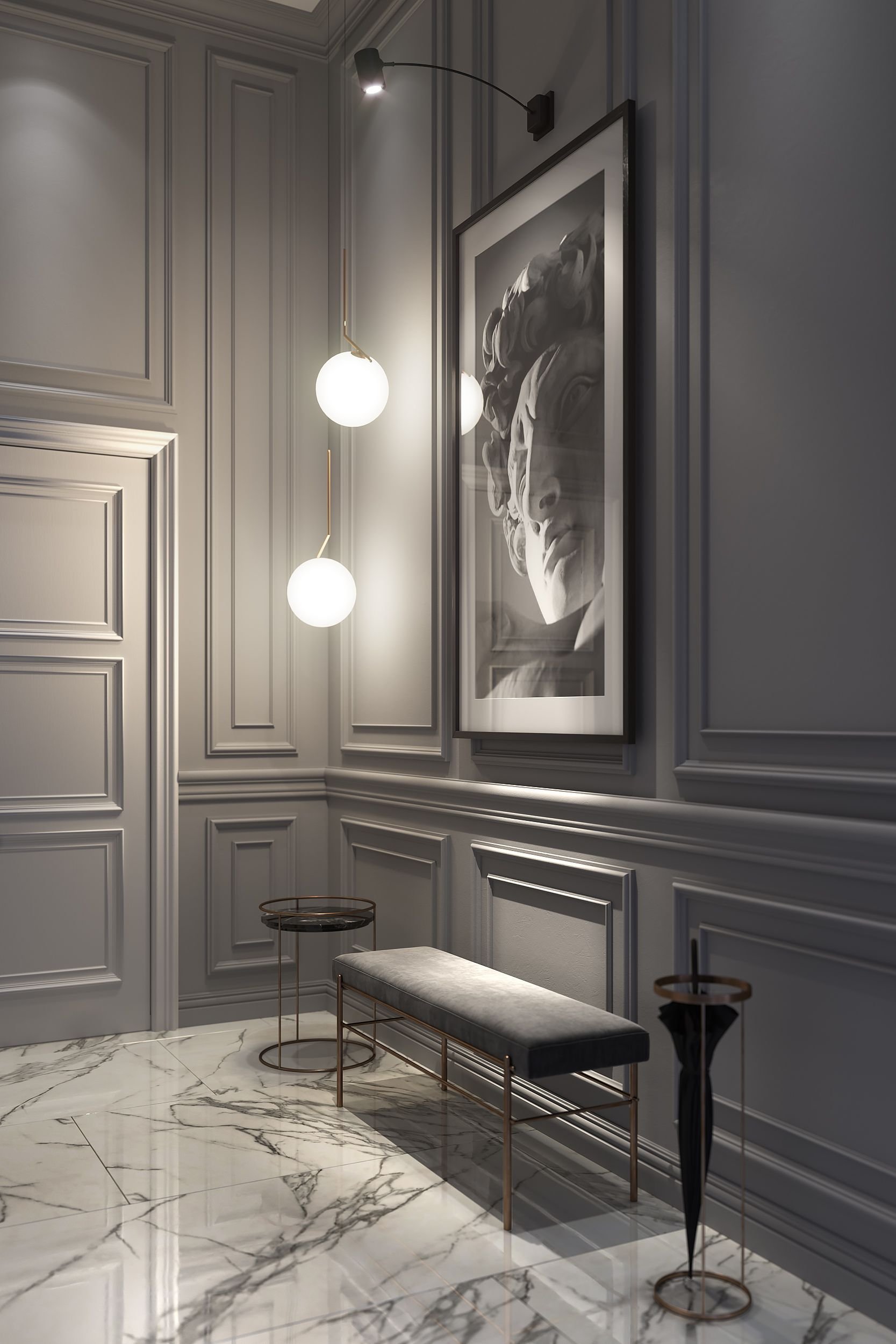 Белая стена с молдингами