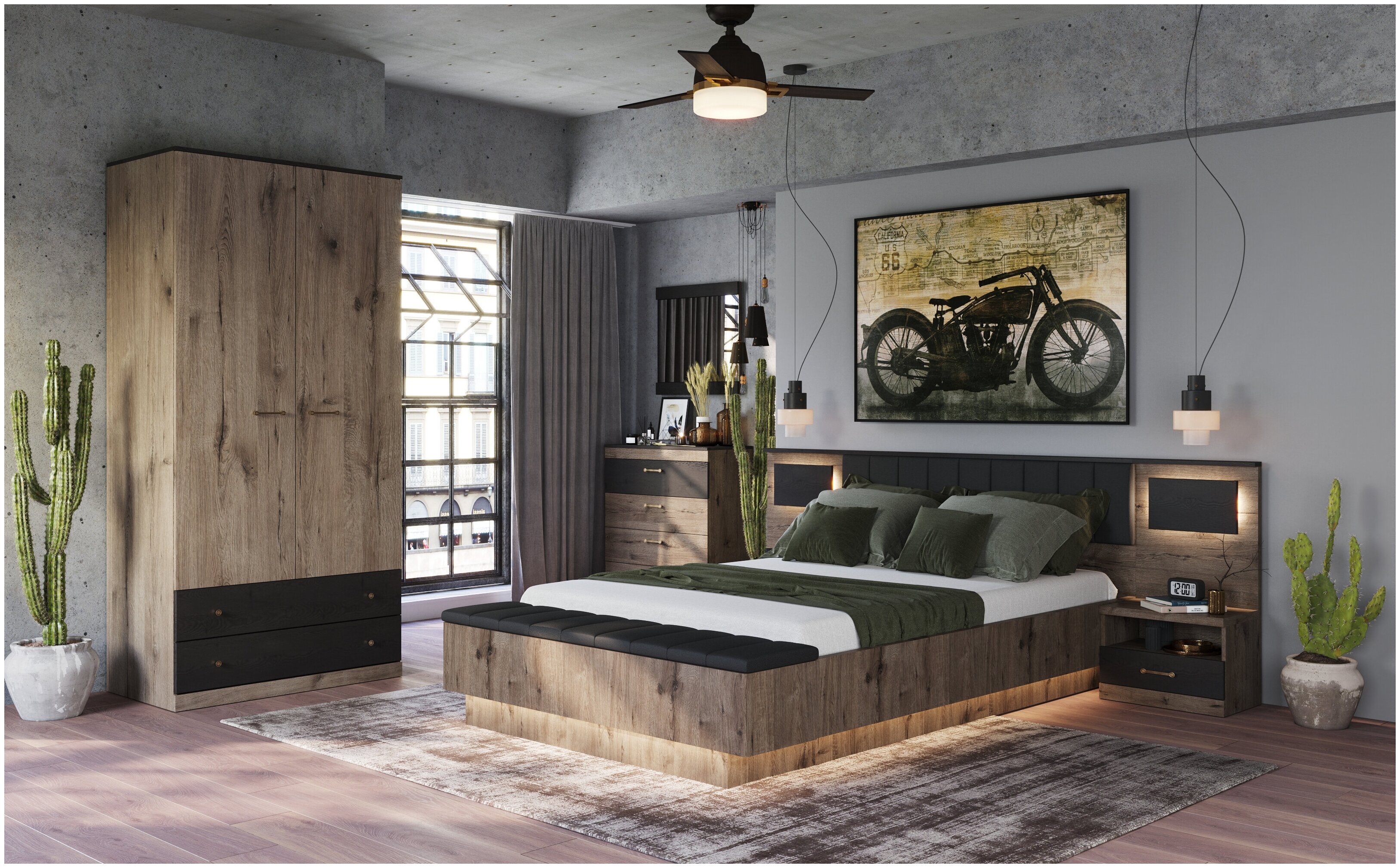 Спальня Денвер дуб Веллингтон