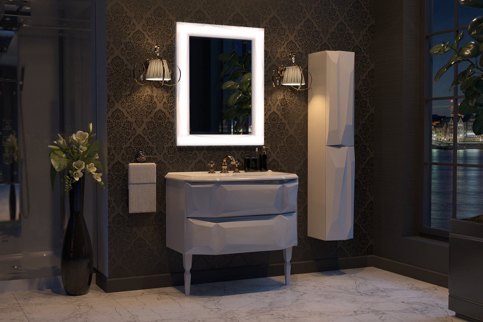 Глянцевая мебель в ванную комнату