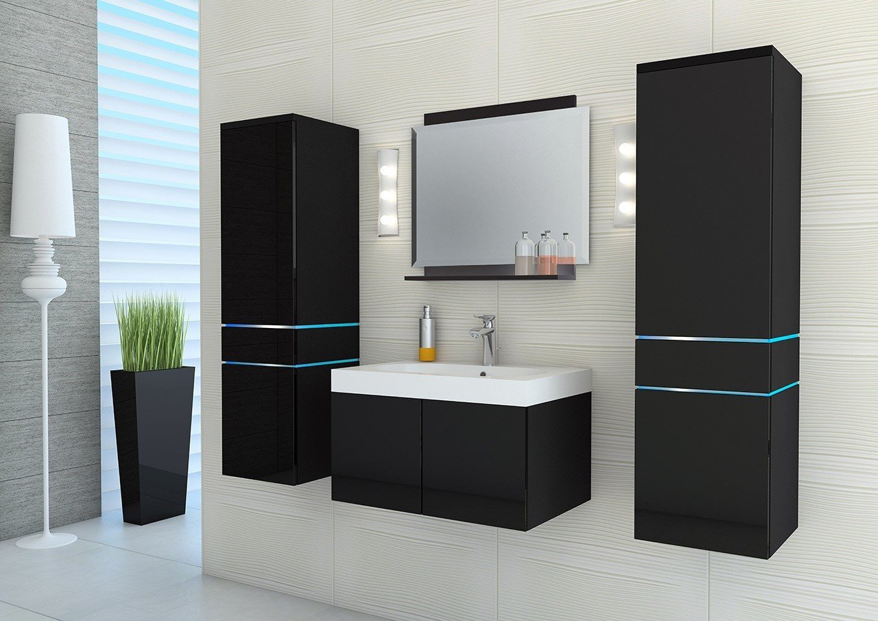 Мебель для ванной черная глянцевая