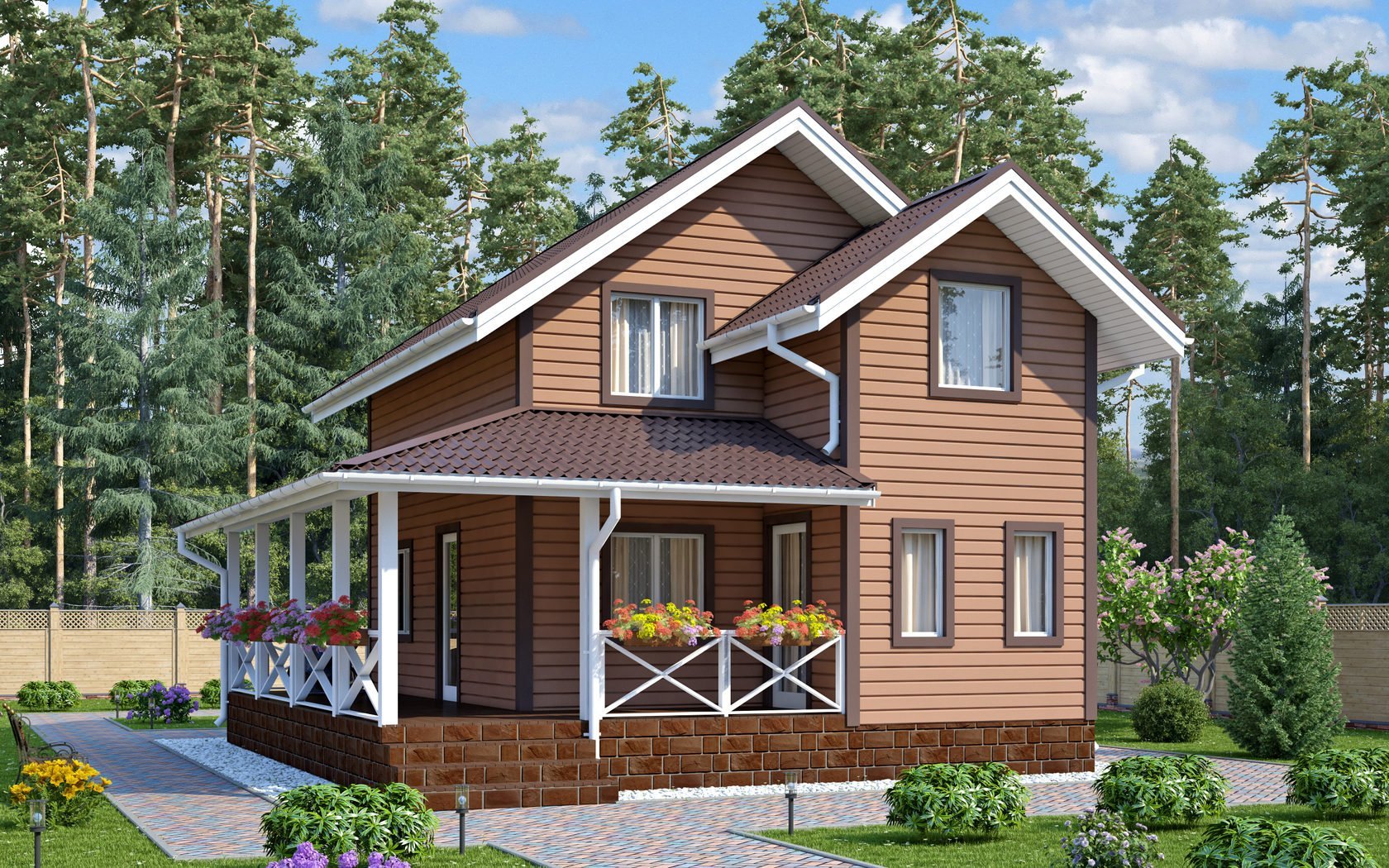 Красивый дачный дом с мансардой