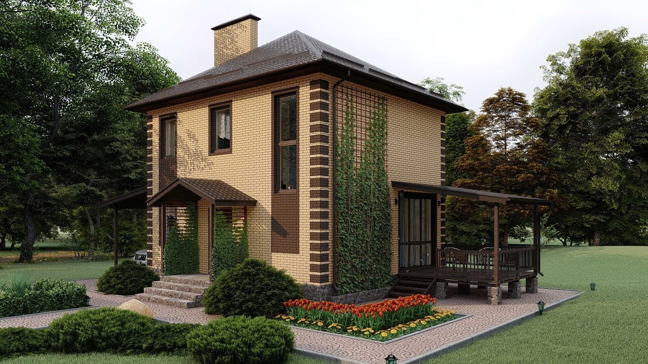 Двухэтажный домик с верандой