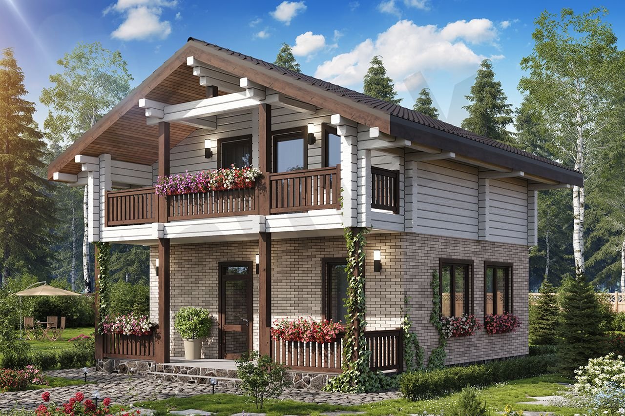 Комбинированное Шале из клееного бруса