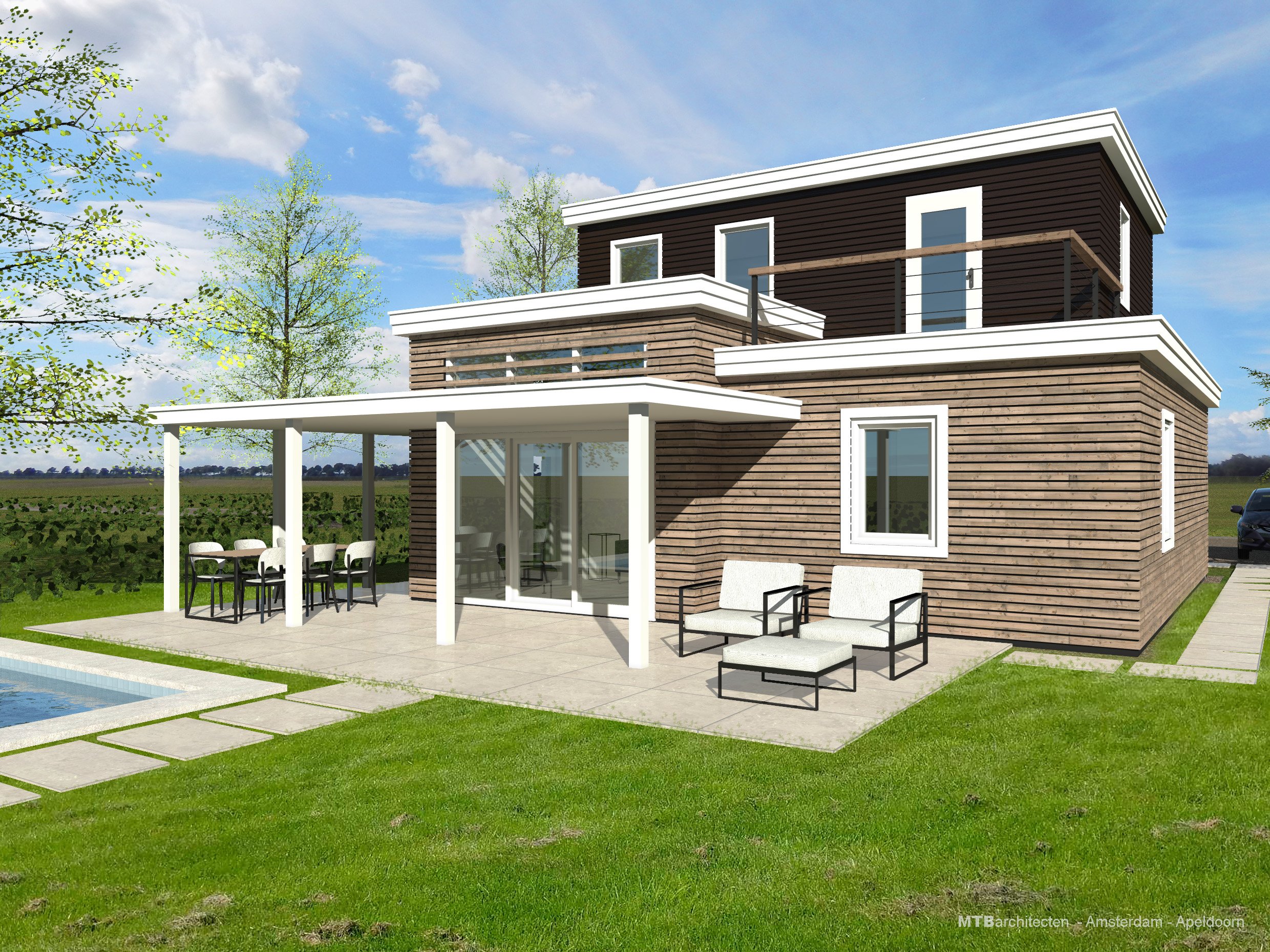 Дом с балконом и террасой