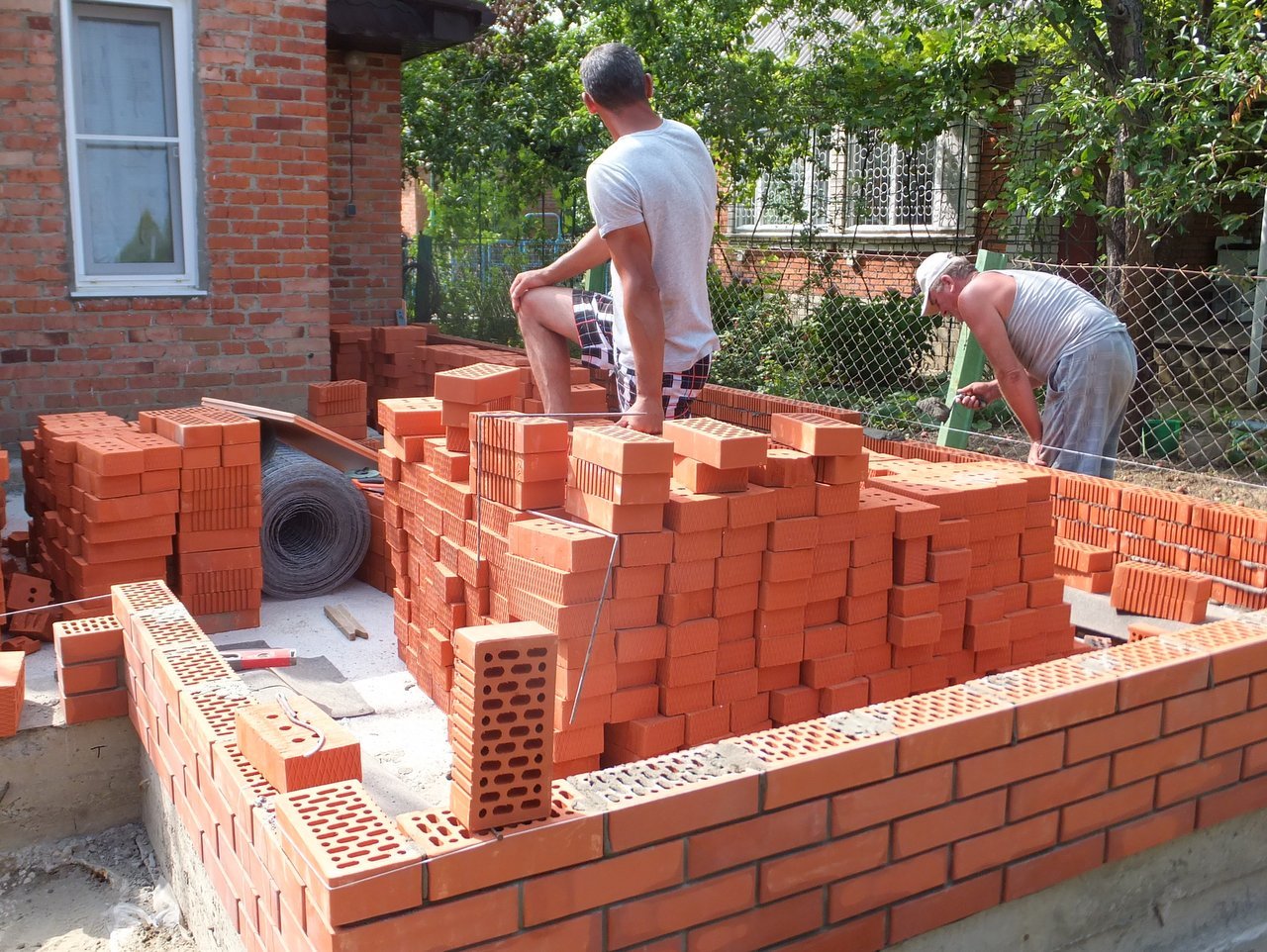 Кладка кирпича на веранде