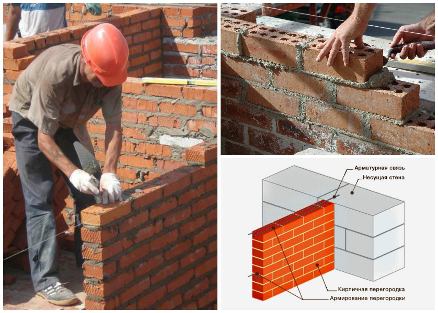 Кладка перегородок из кирпича (1/2 кирпича)