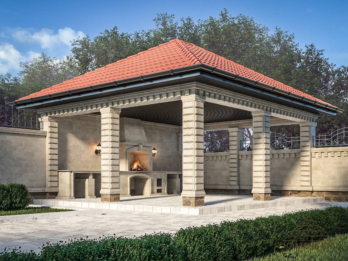 Беседка из камня с мангалом