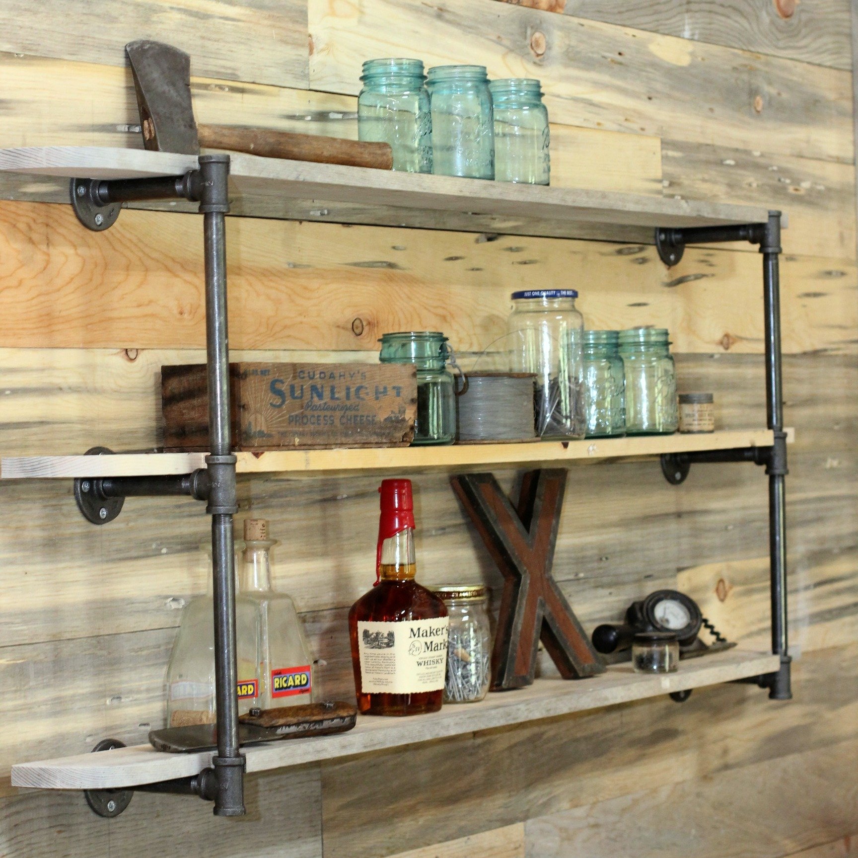 Полка из металла и дерева лофт