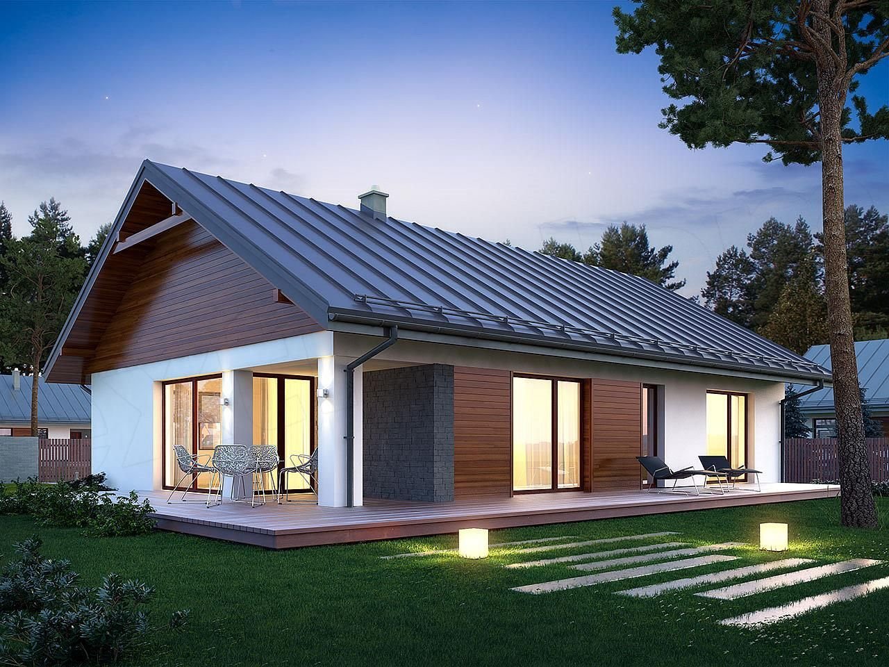 Дом 100 кв м одноэтажный с двухскатной крышей