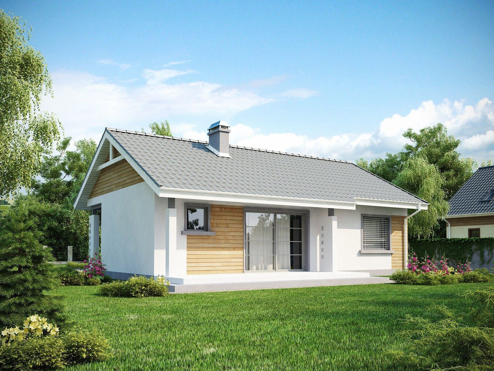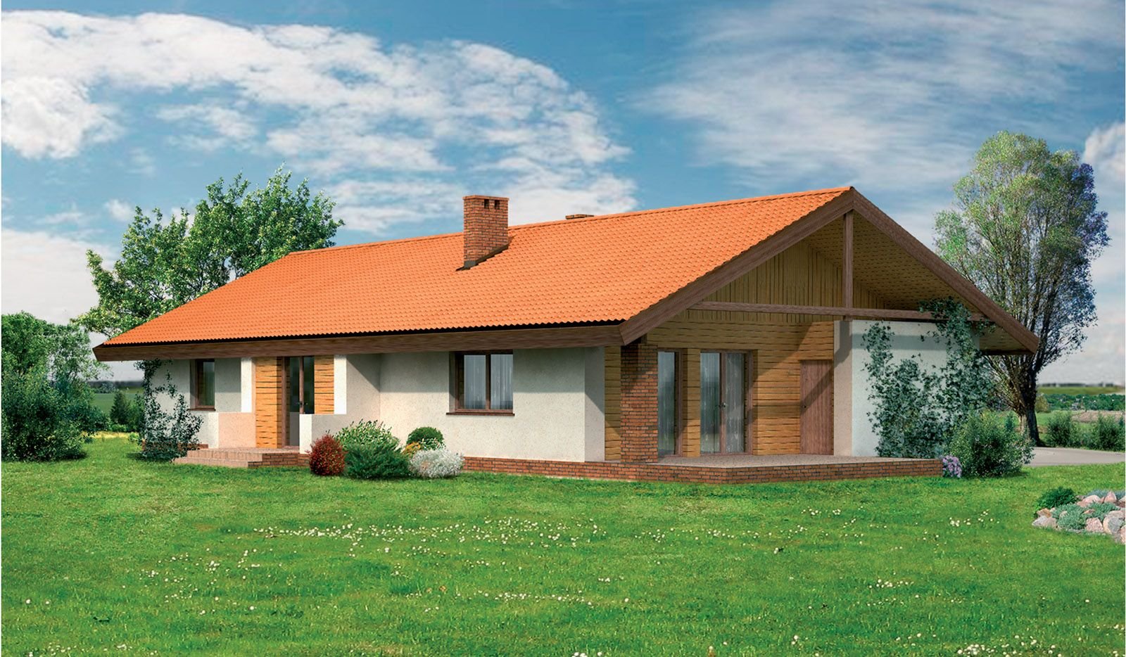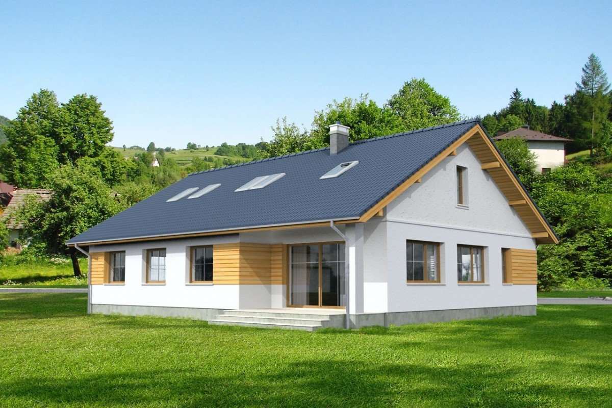 Дом в один этаж с двускатной крышей