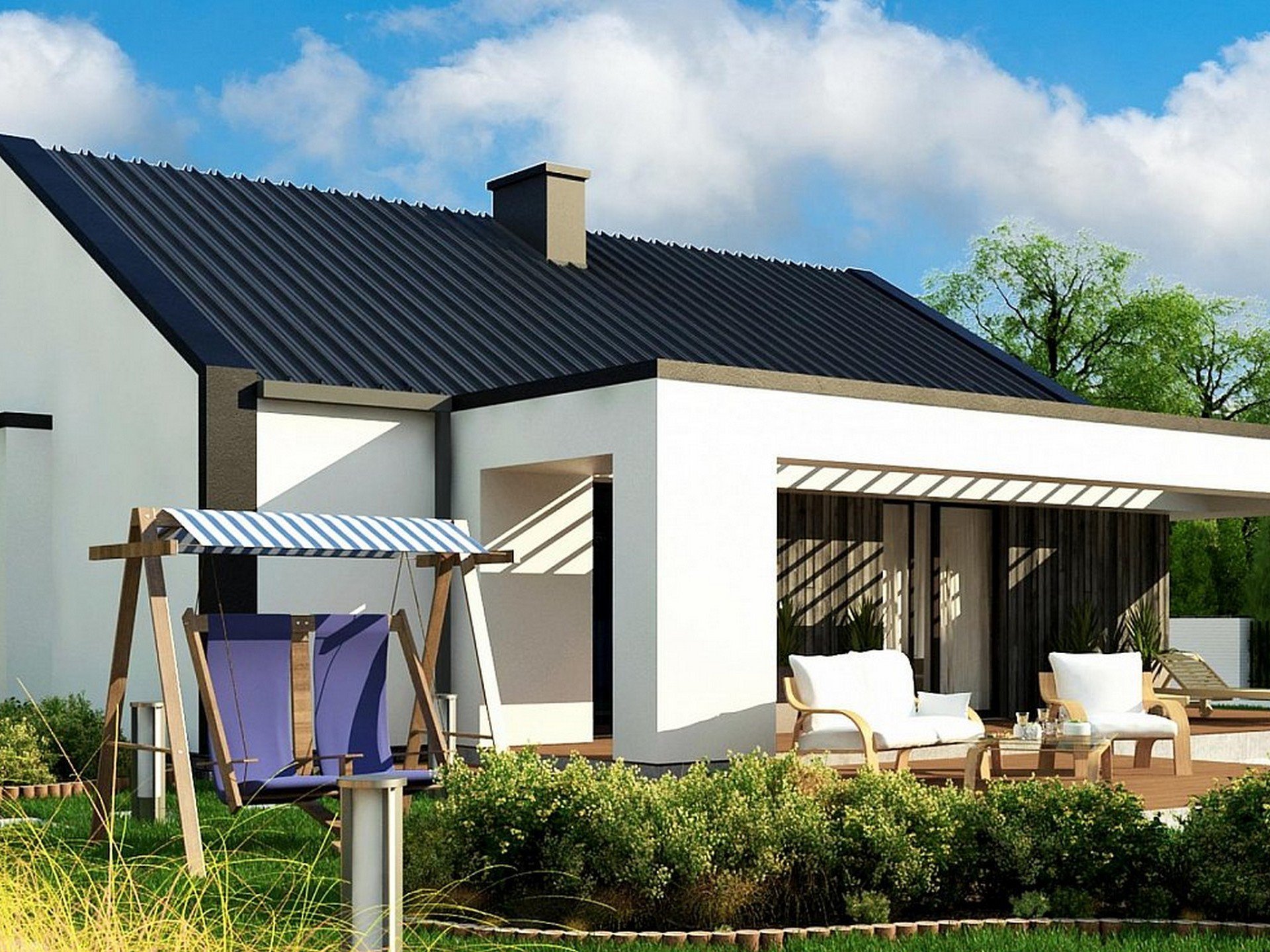 Одноэтажный дом с террасой 100 кв