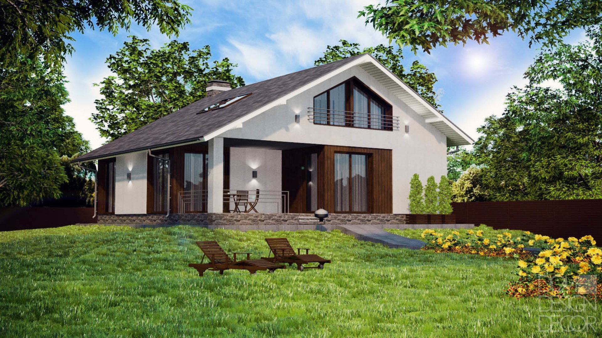 Дом с мансардой и террасой 120кв одноэтажный