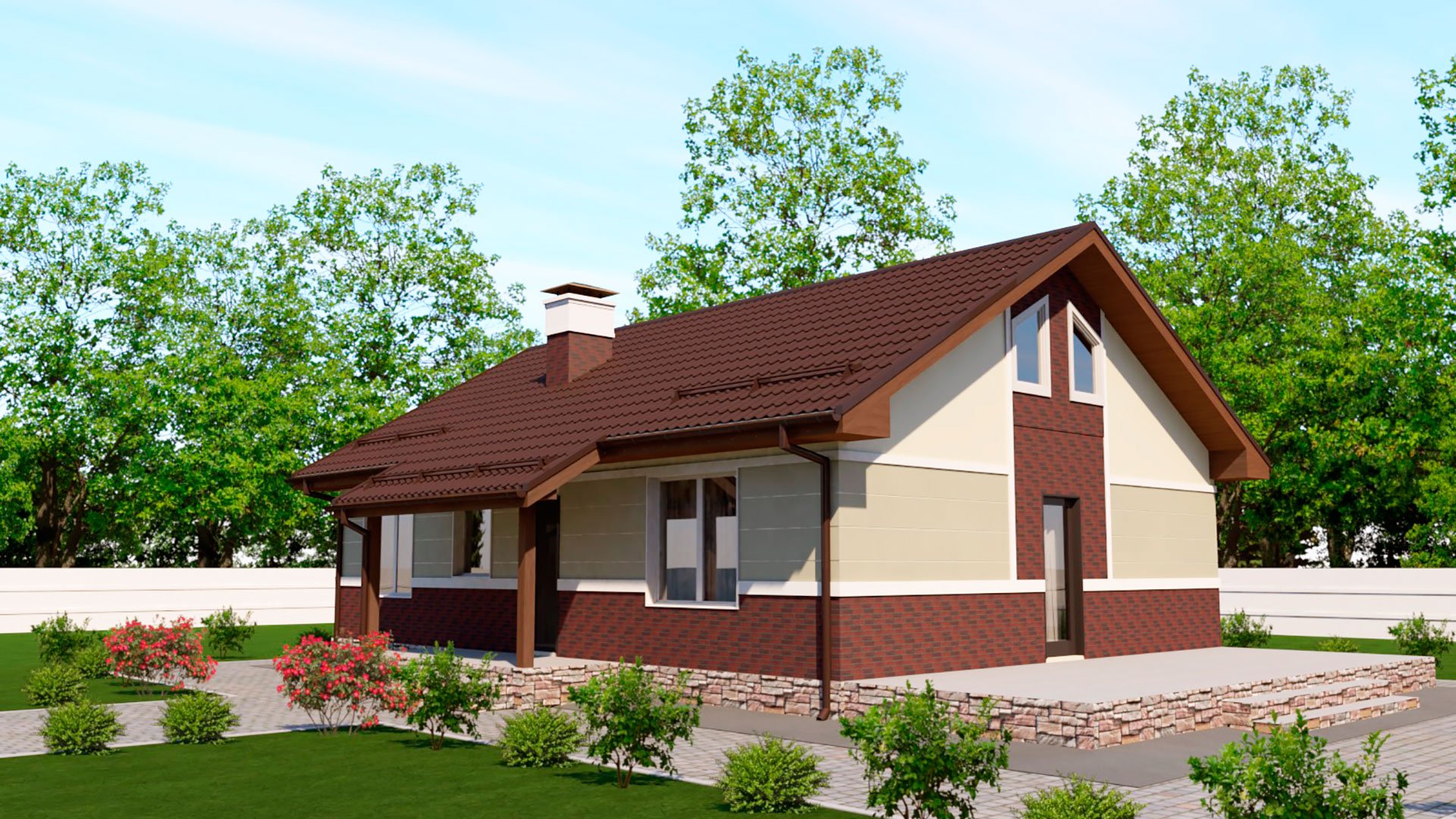 Дом 80 м2 одноэтажный с мансардой из газобетона