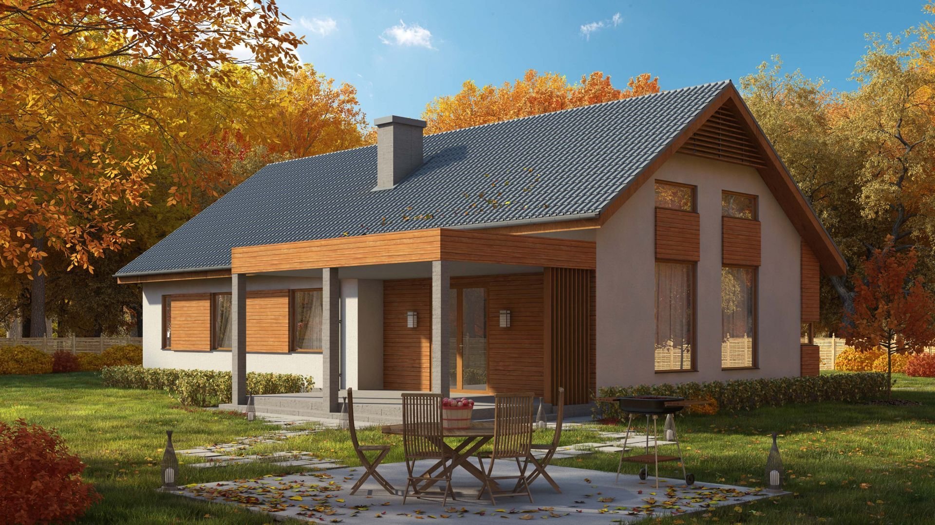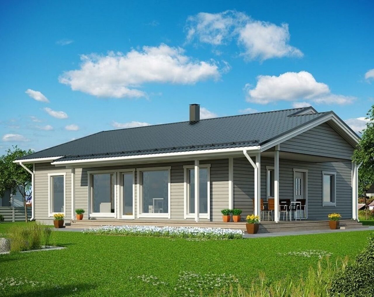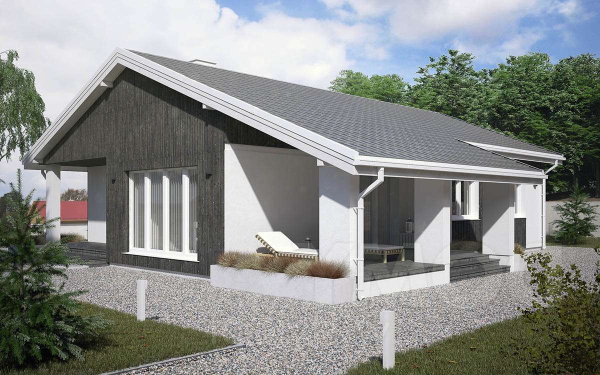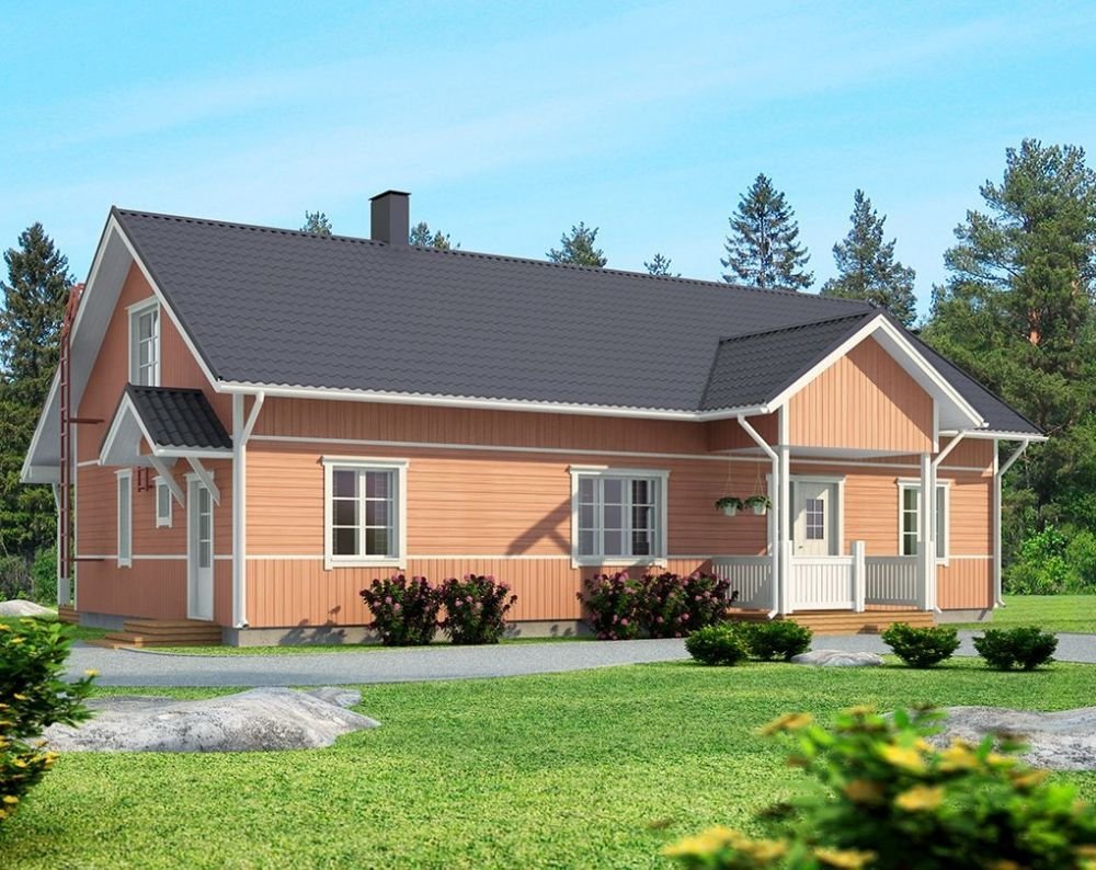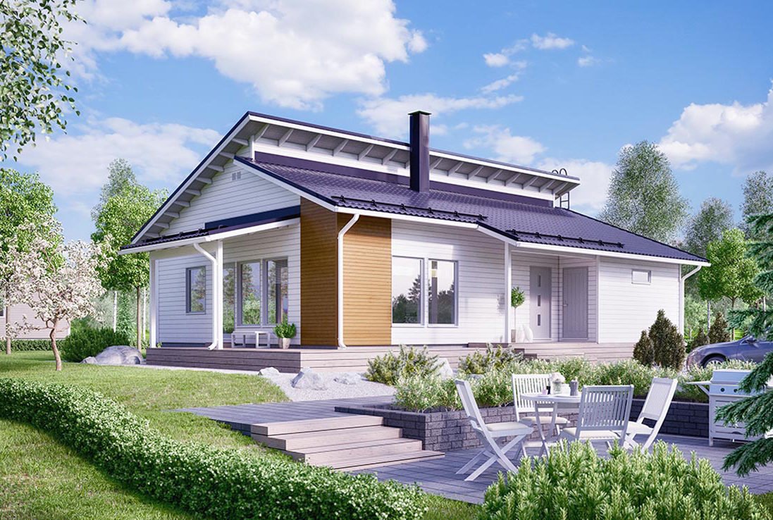 Одноэтажный финский дом с двускатной крышей