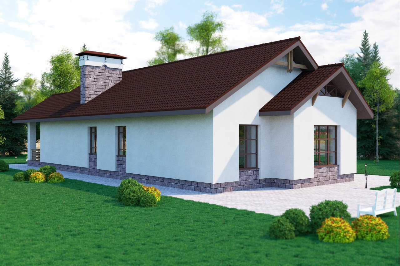 Одноэтажный дом с двухскатной крышей 100кв