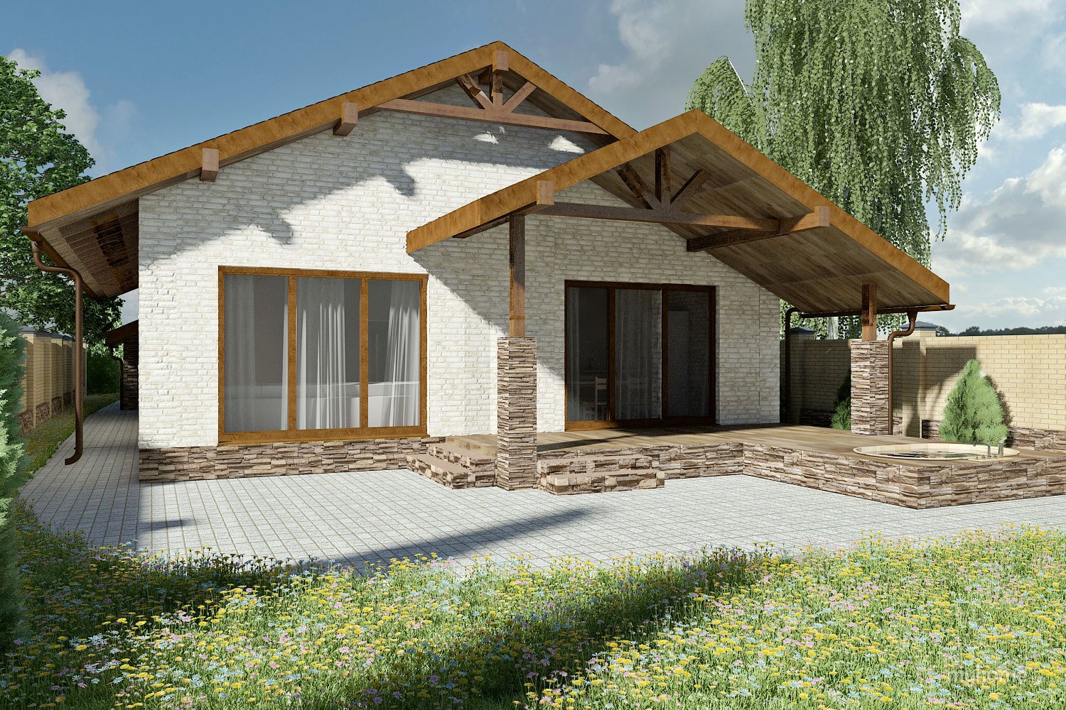 Одноэтажный дом 120кв с террасой