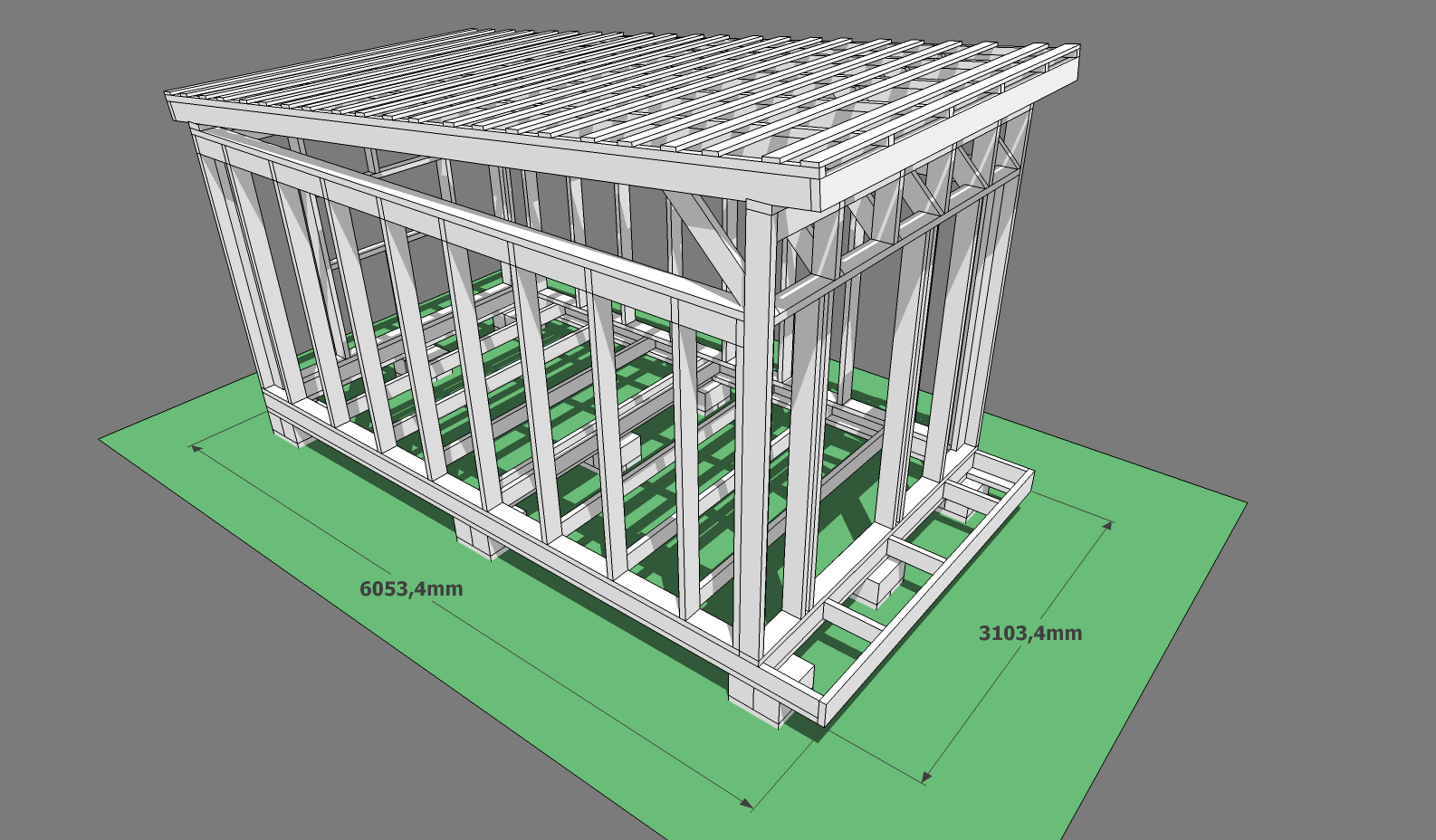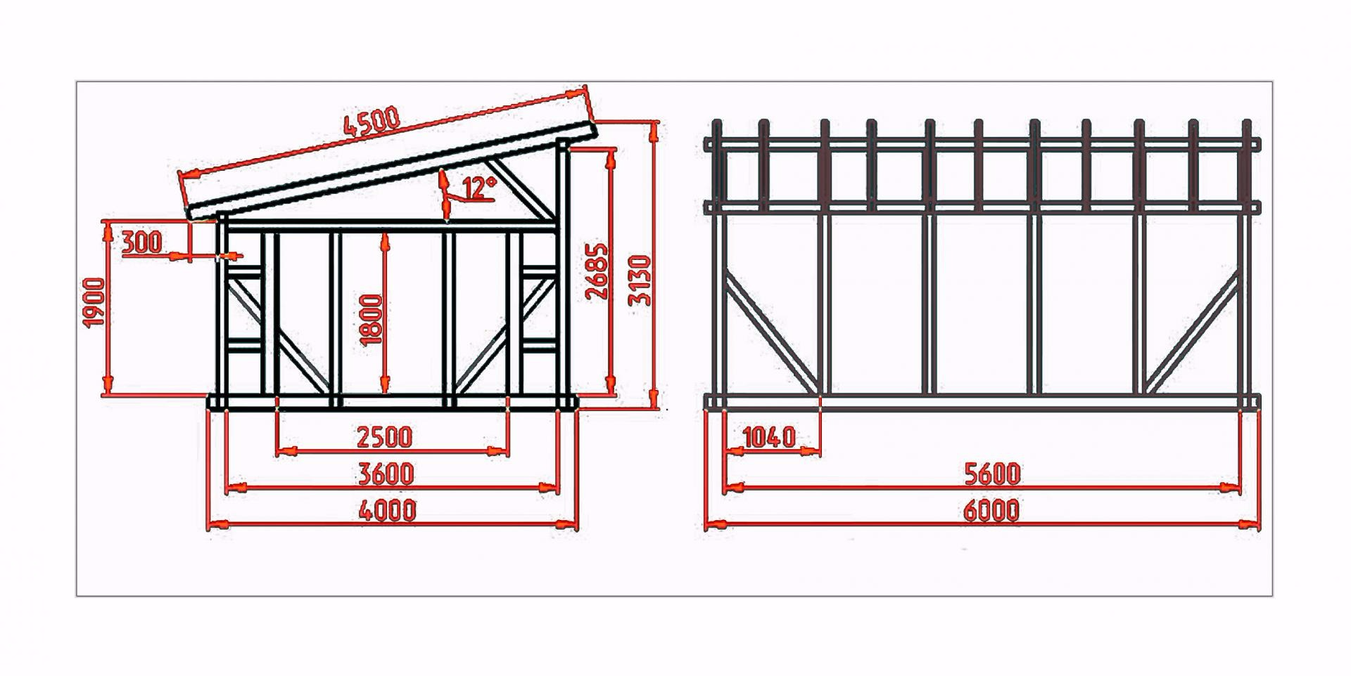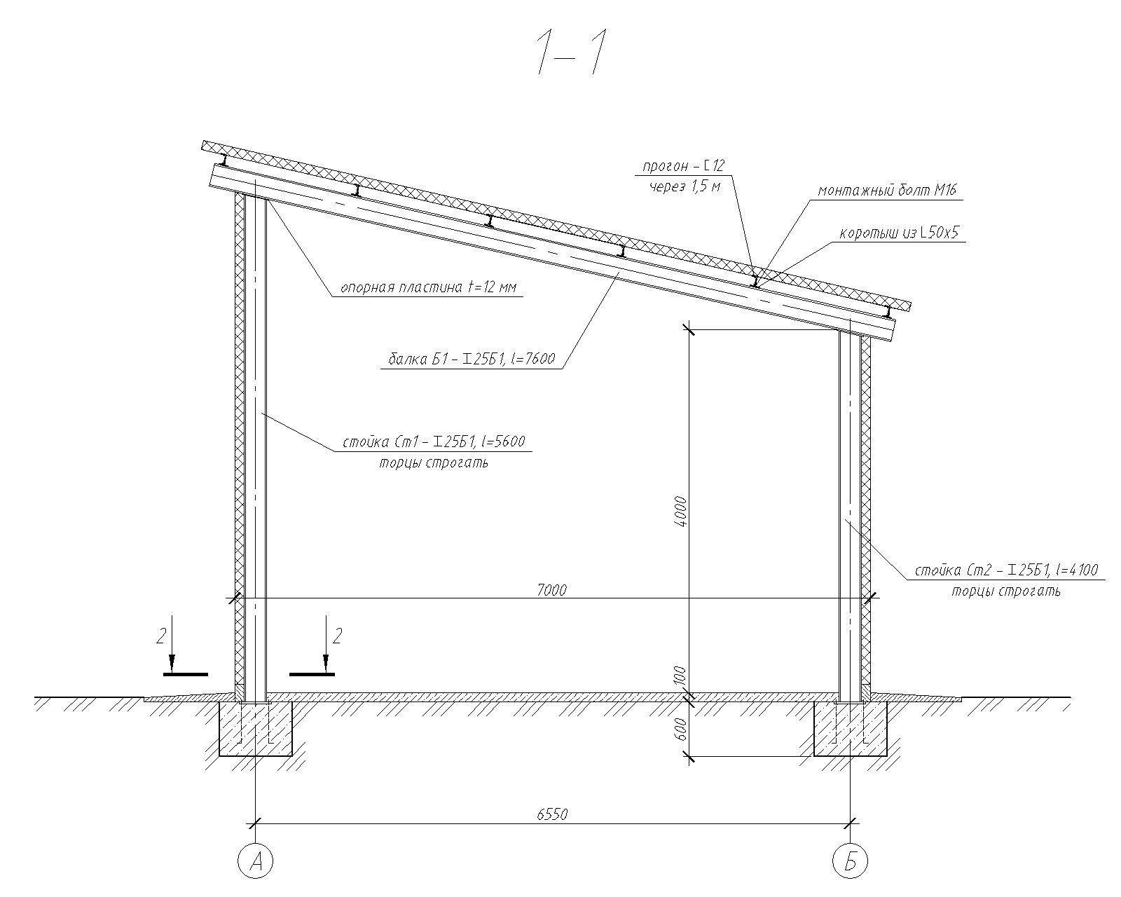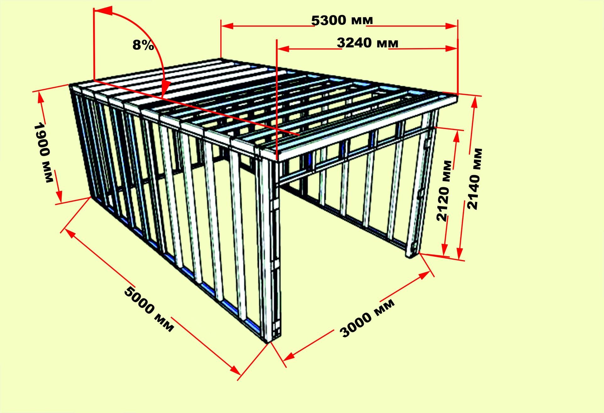 Гараж из профильной трубы 50x50 с односкатной крышей чертеж с размерами