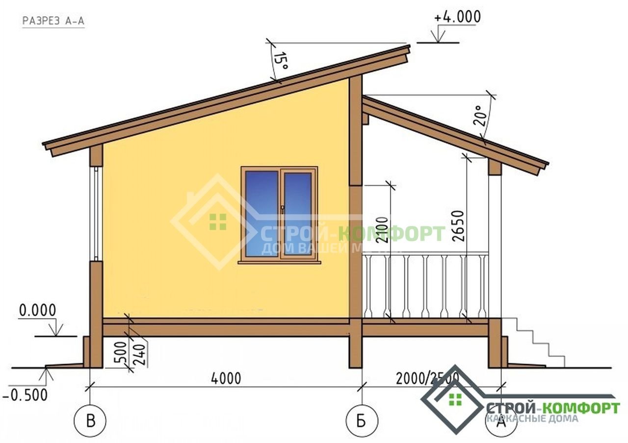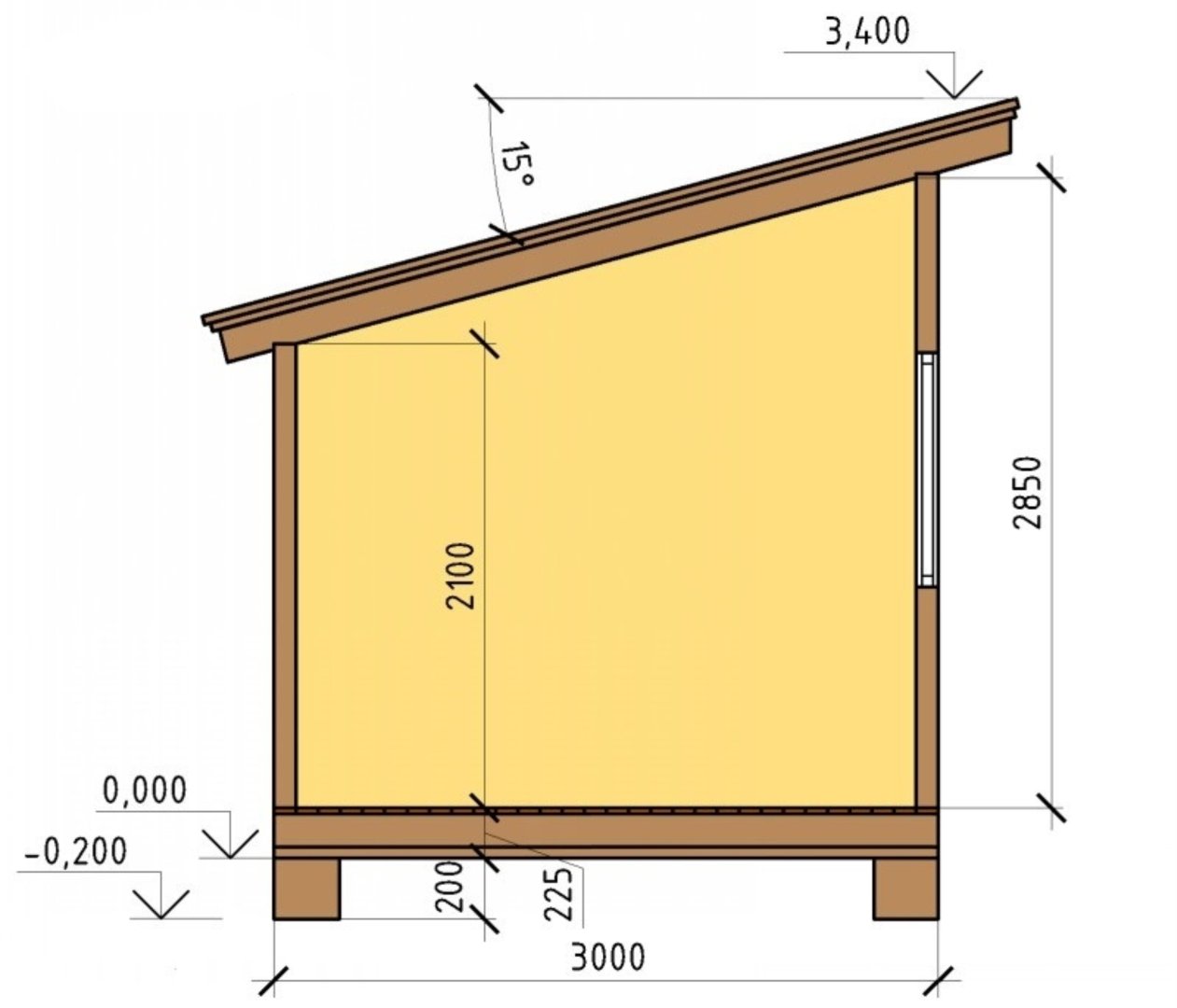Каркасный сарай с односкатной крышей 2.5 х 5