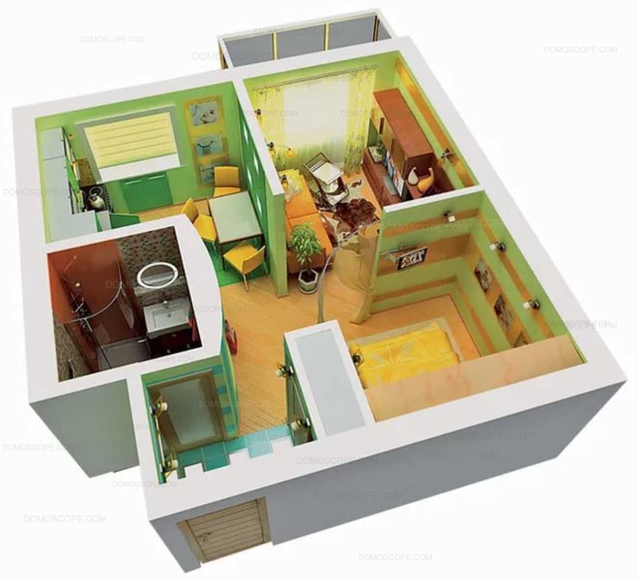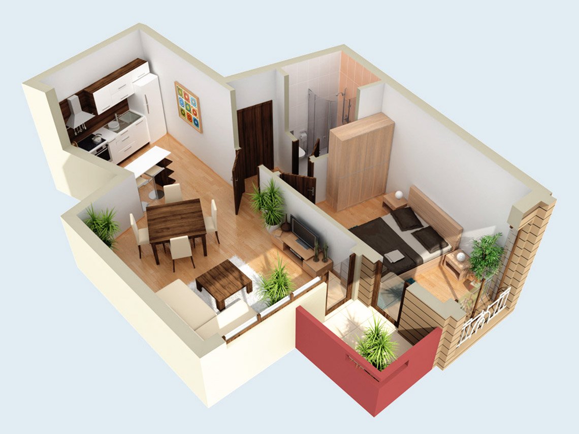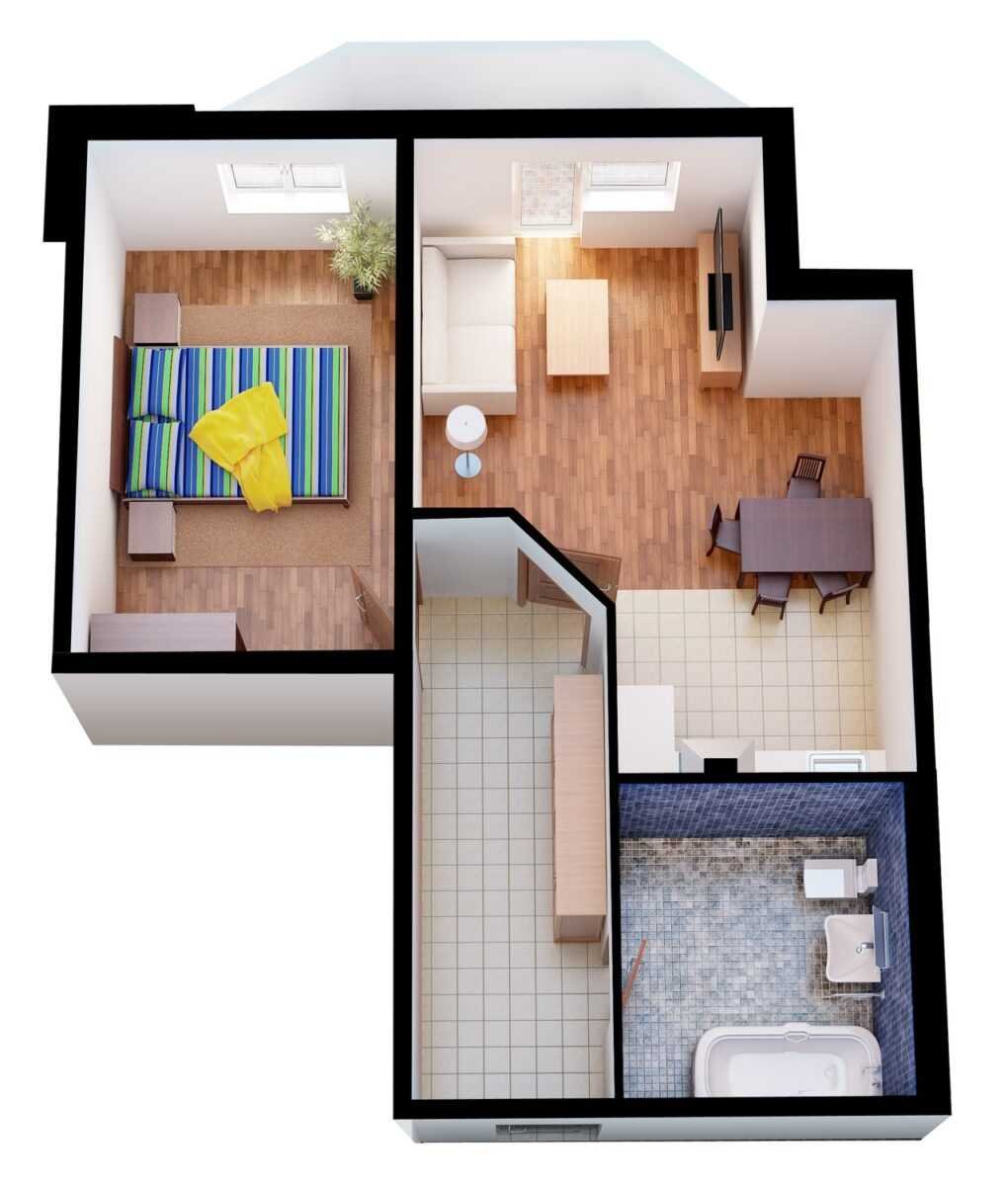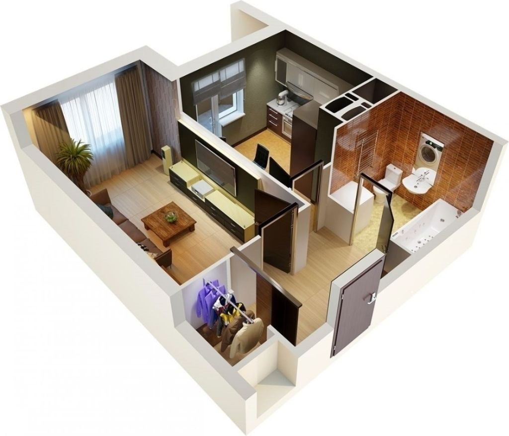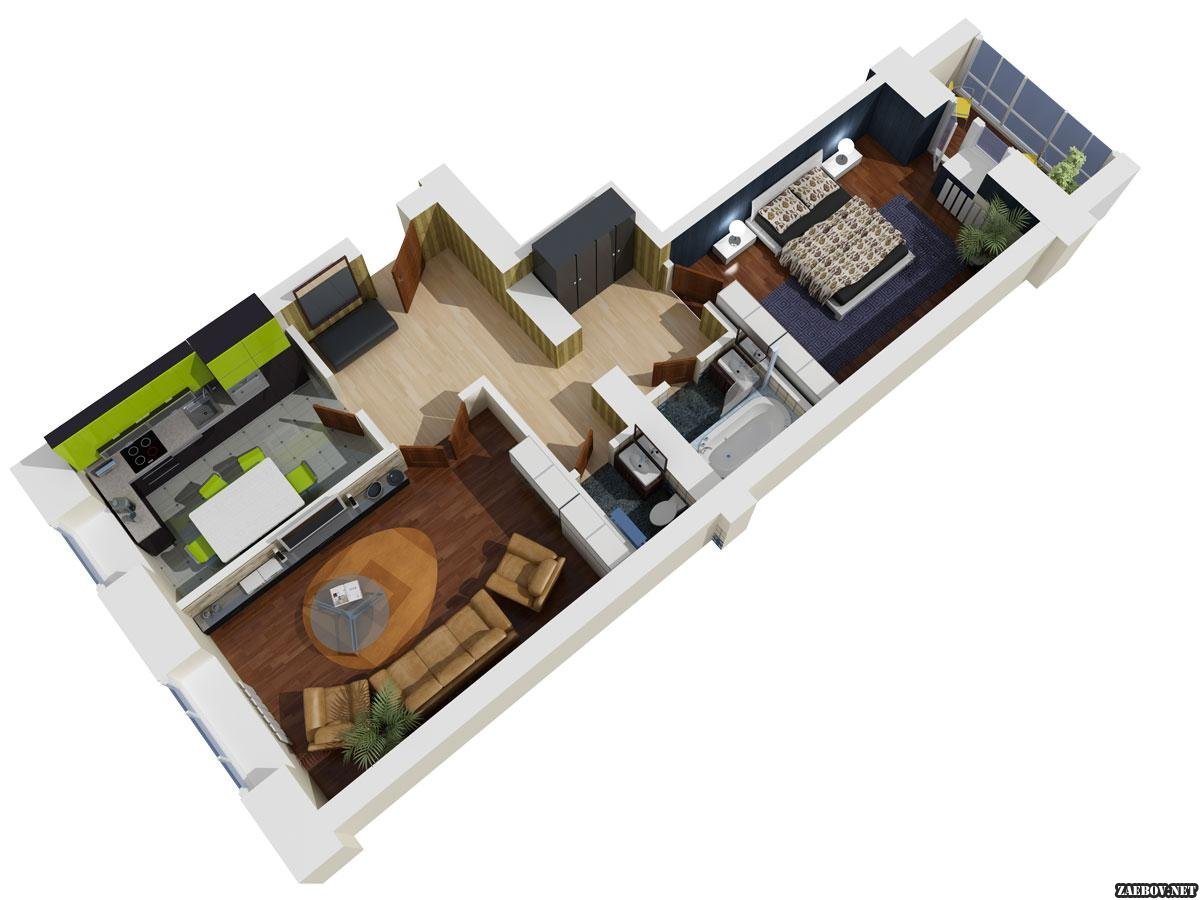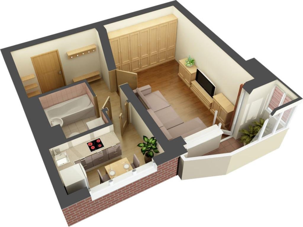 Планировка 1 комнатной квартиры 3d
