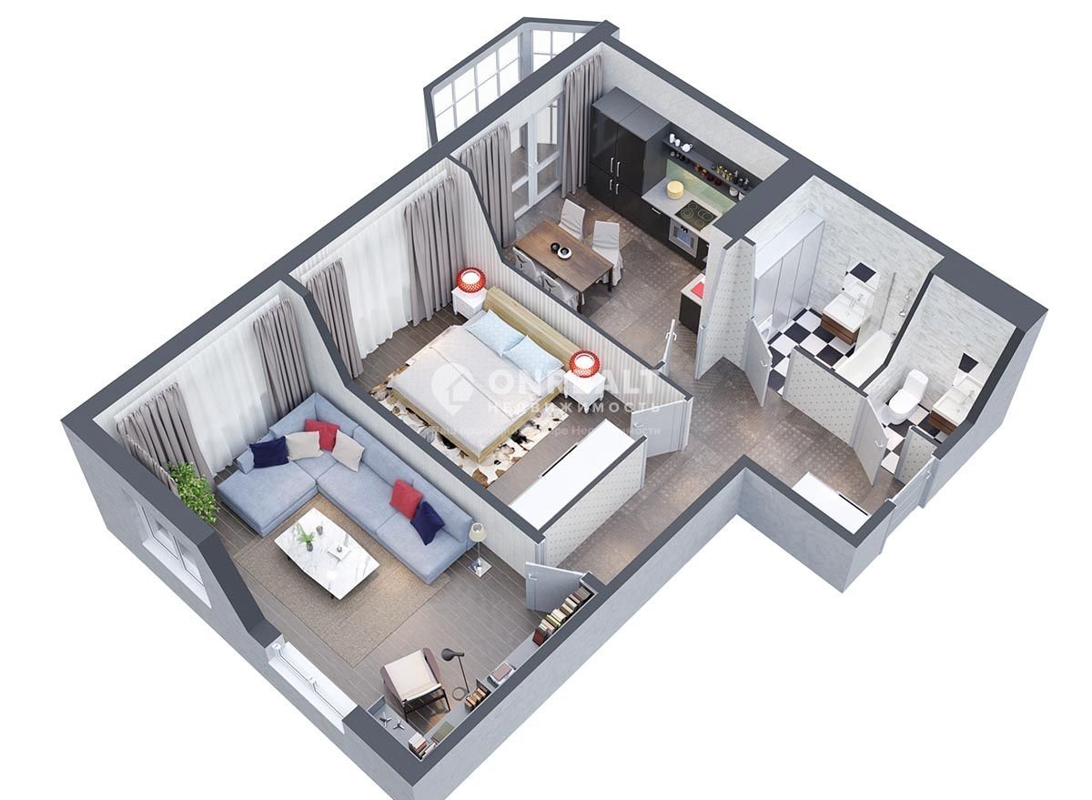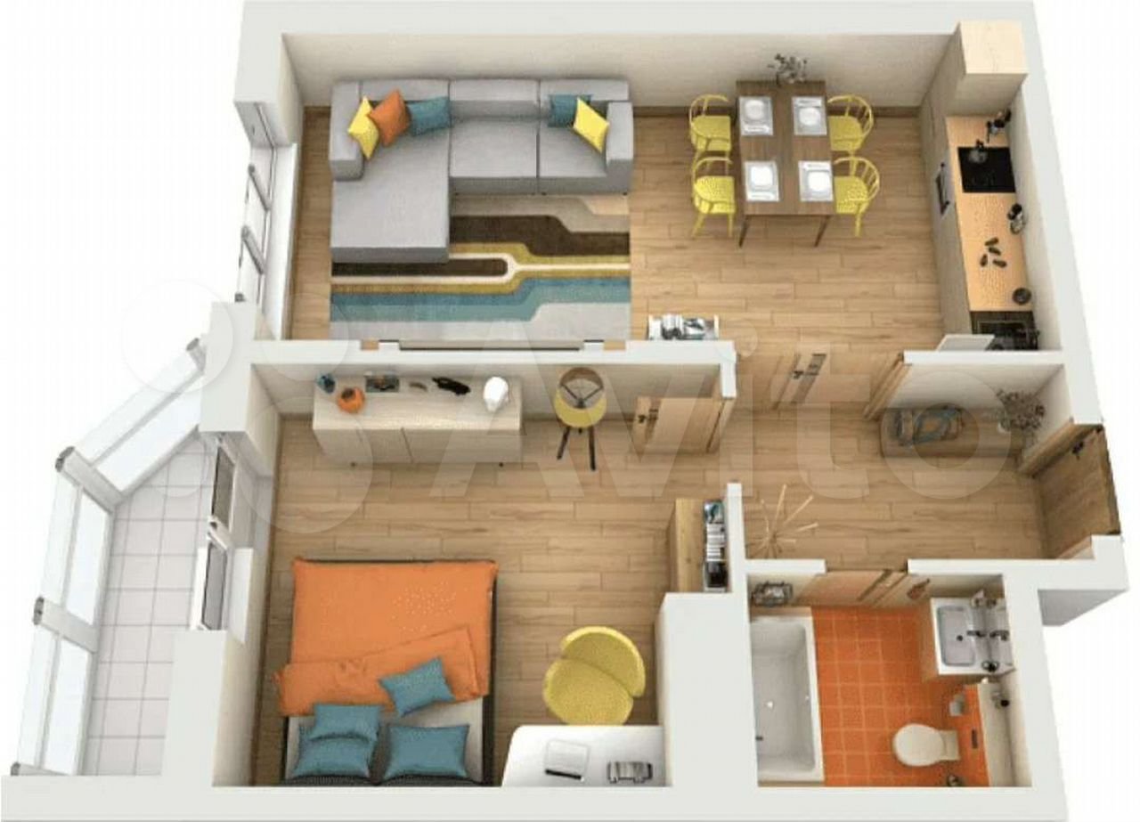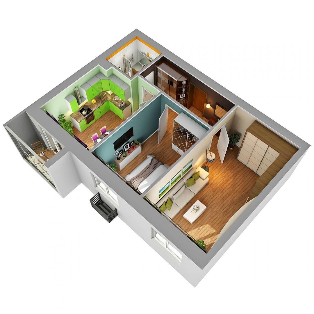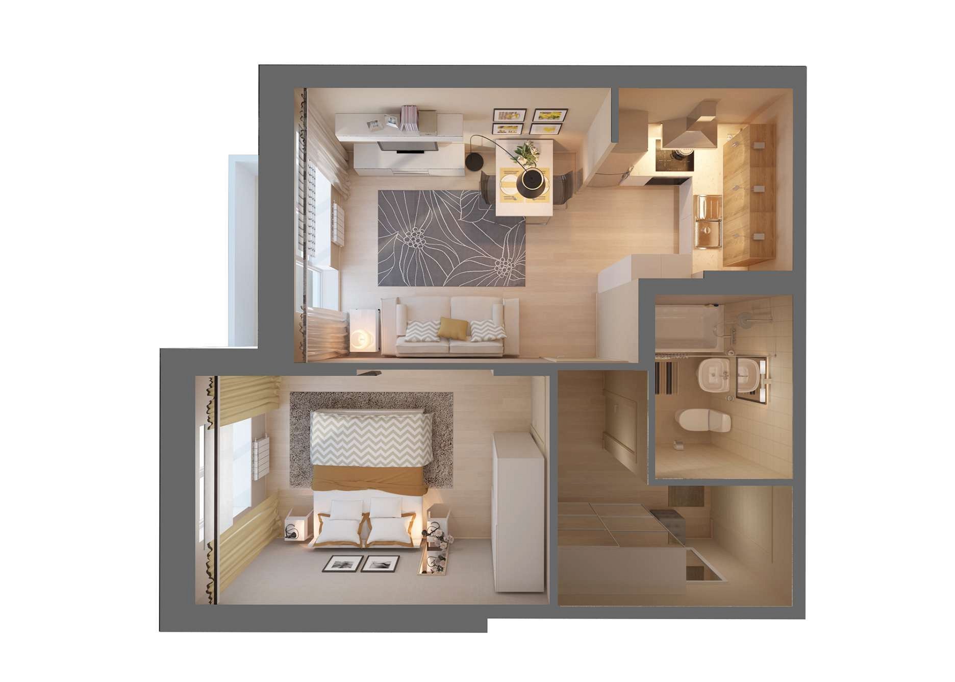 Планировка 1 комнатной квартиры 3d