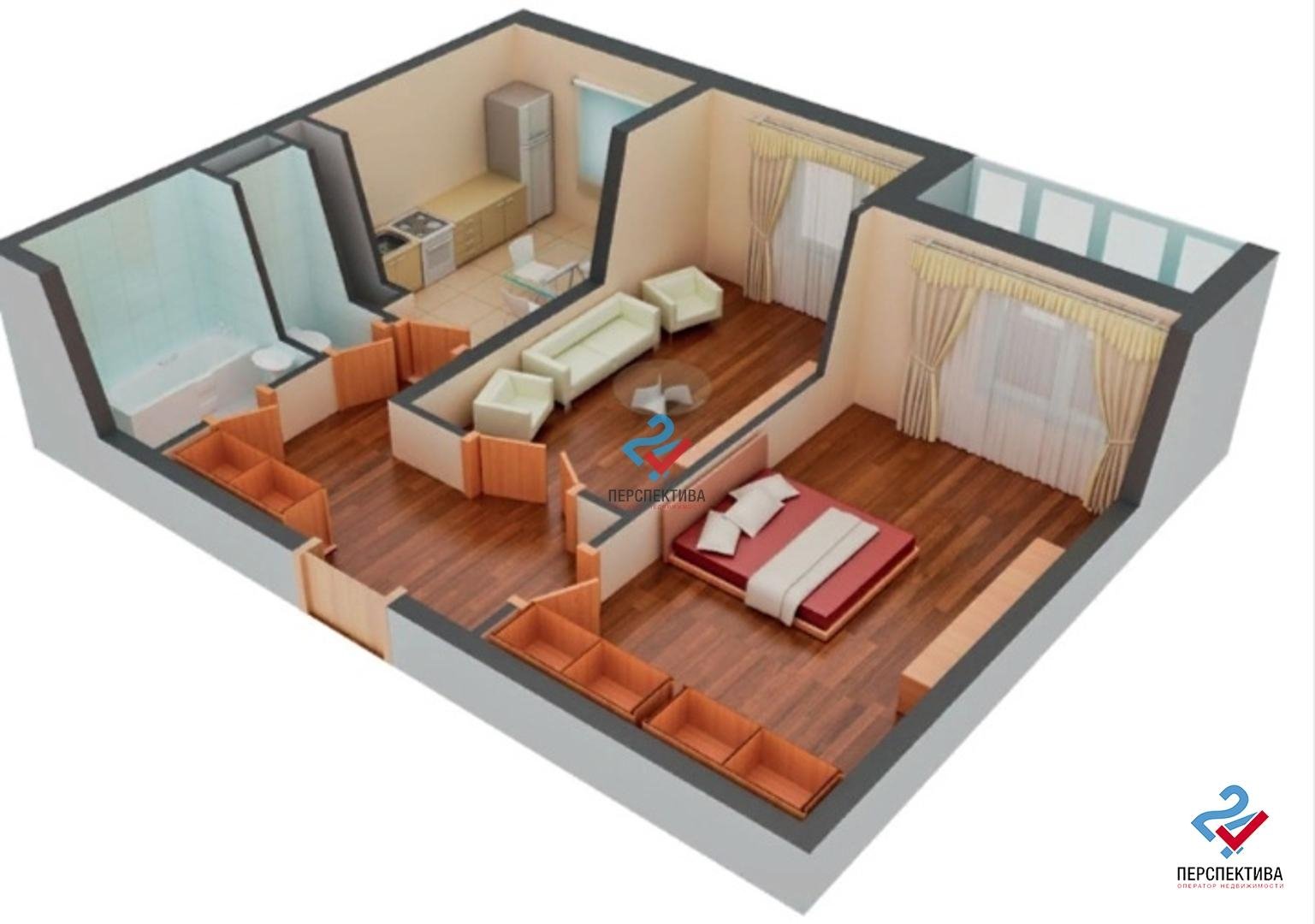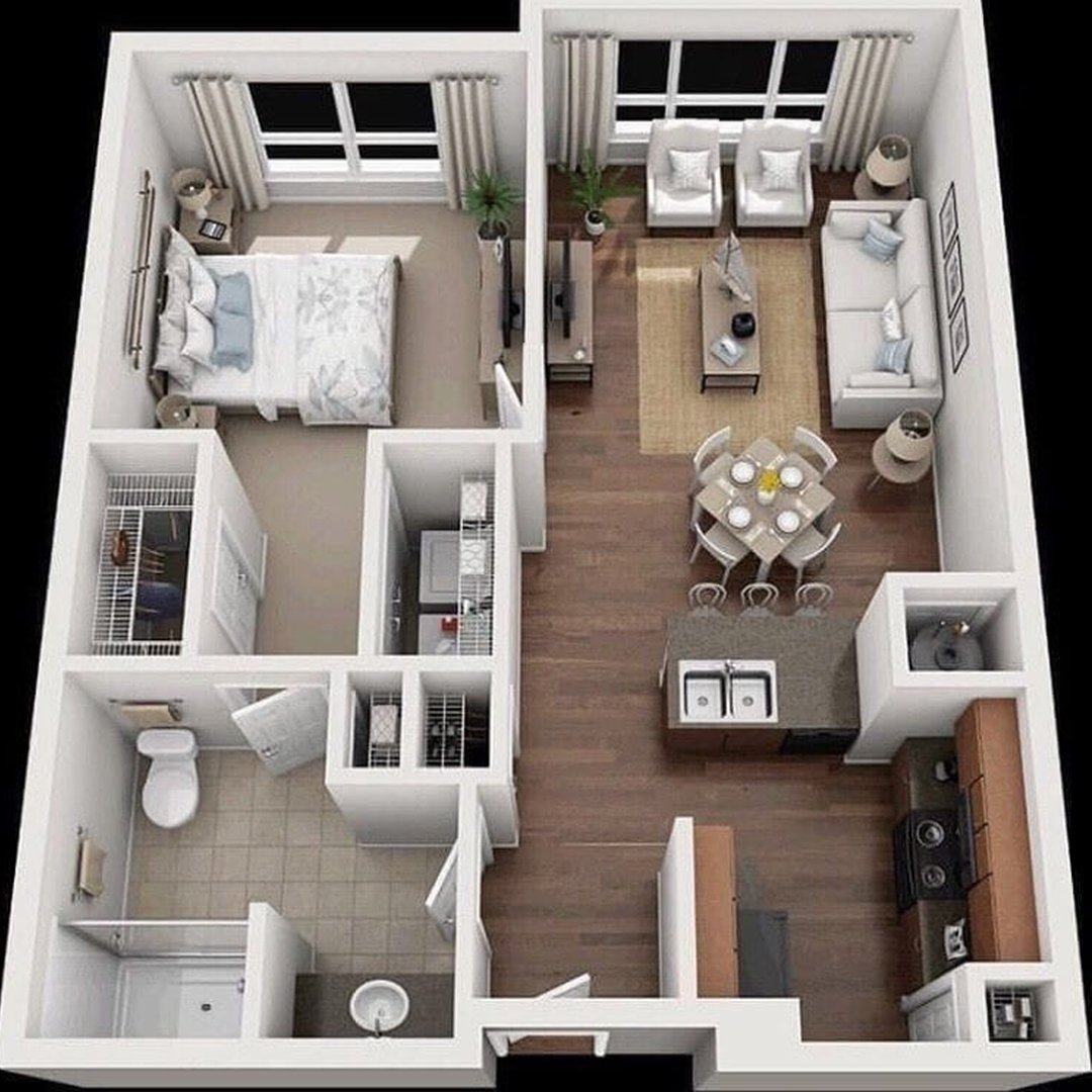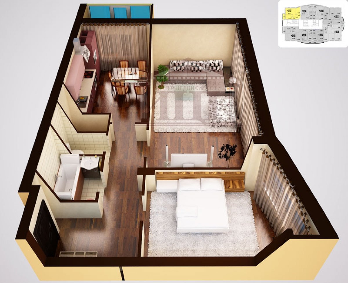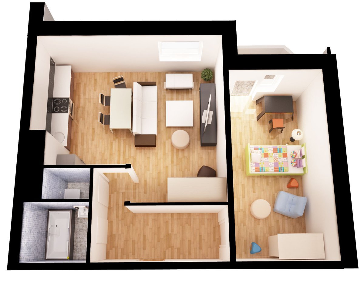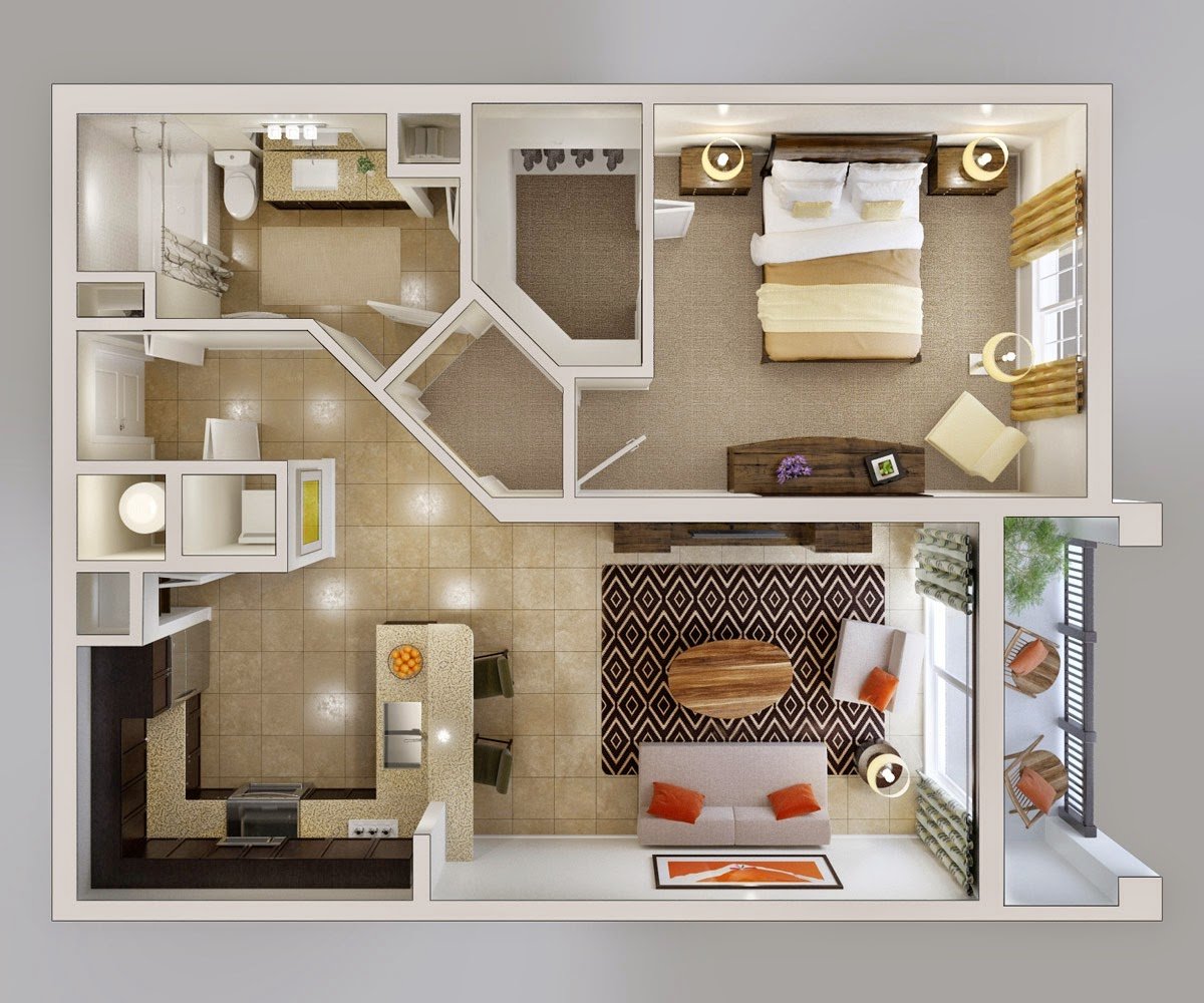 Планировка 1 комнатной квартиры 3d