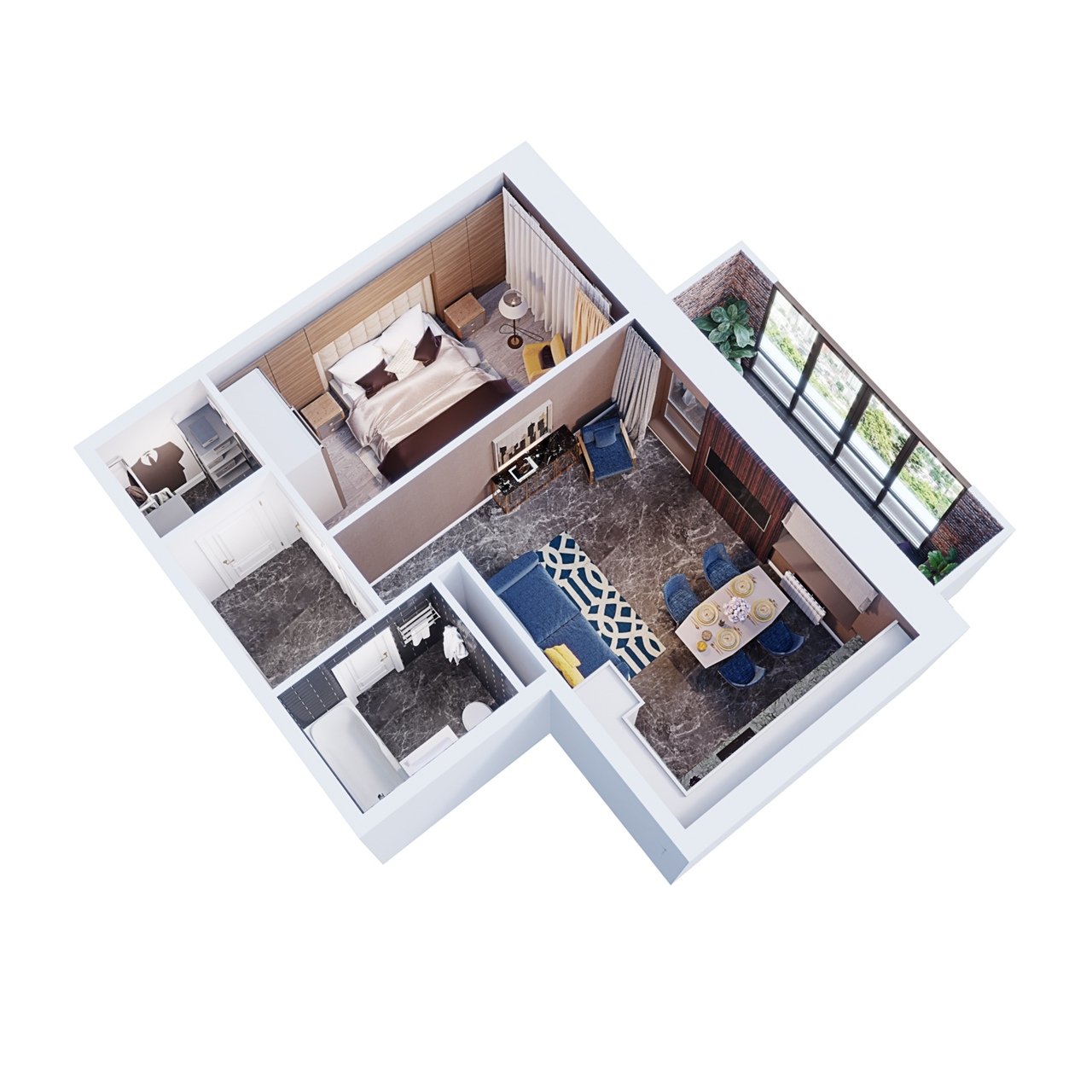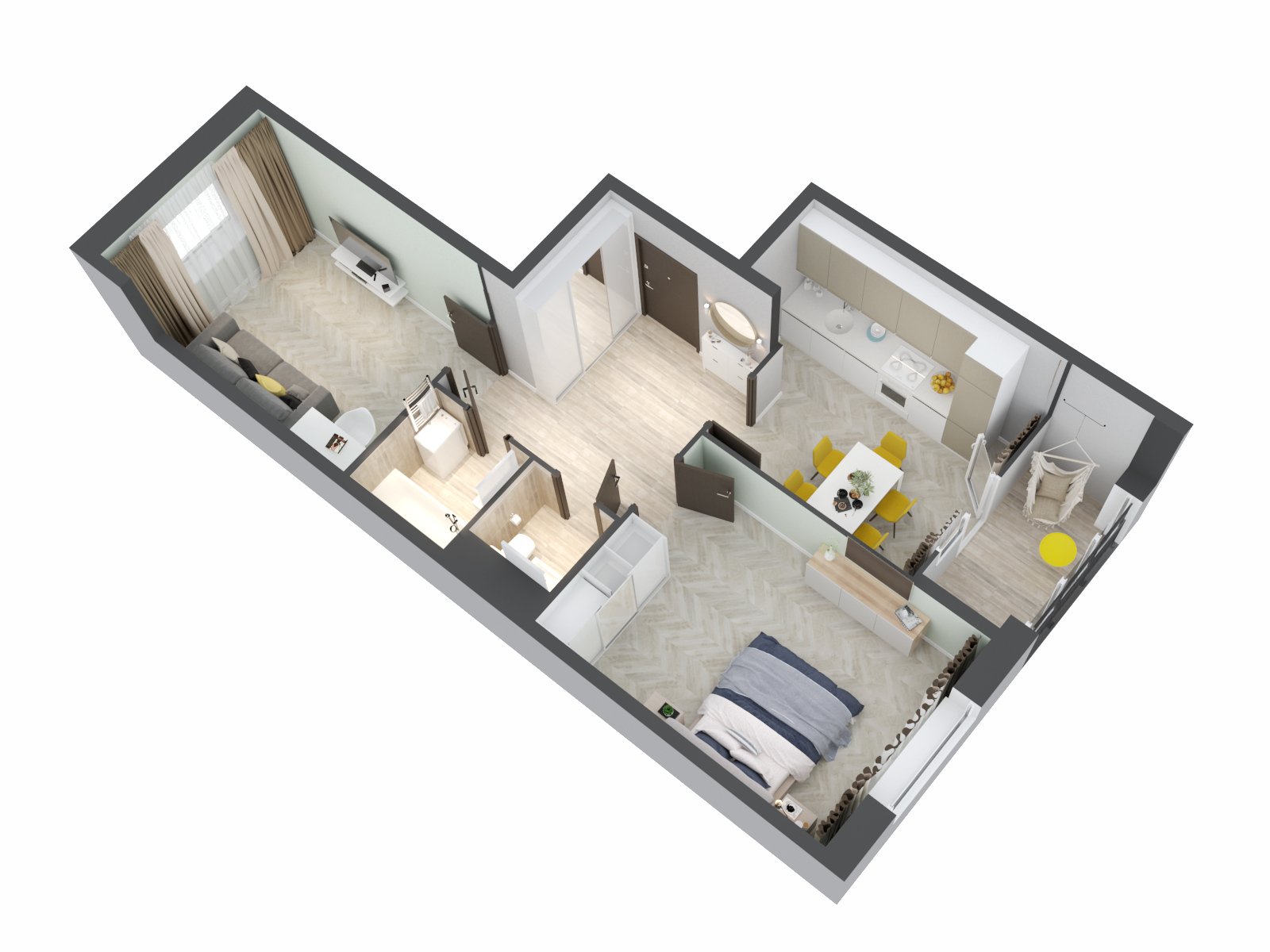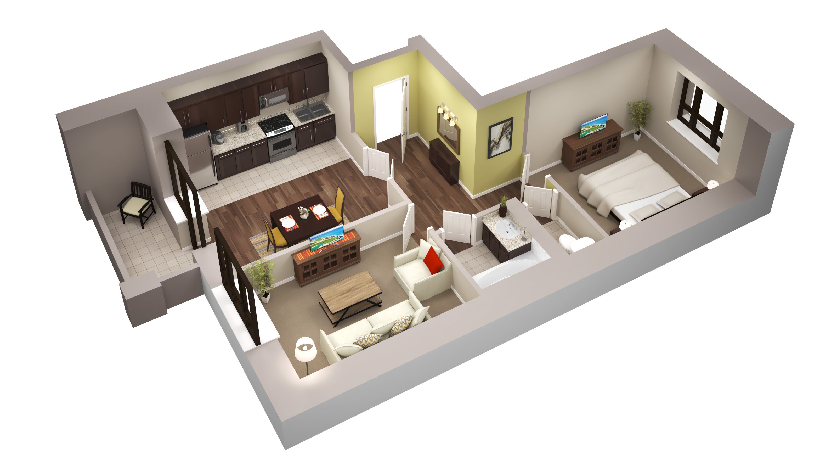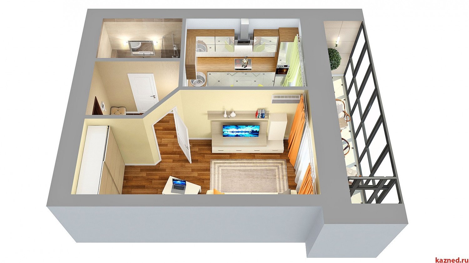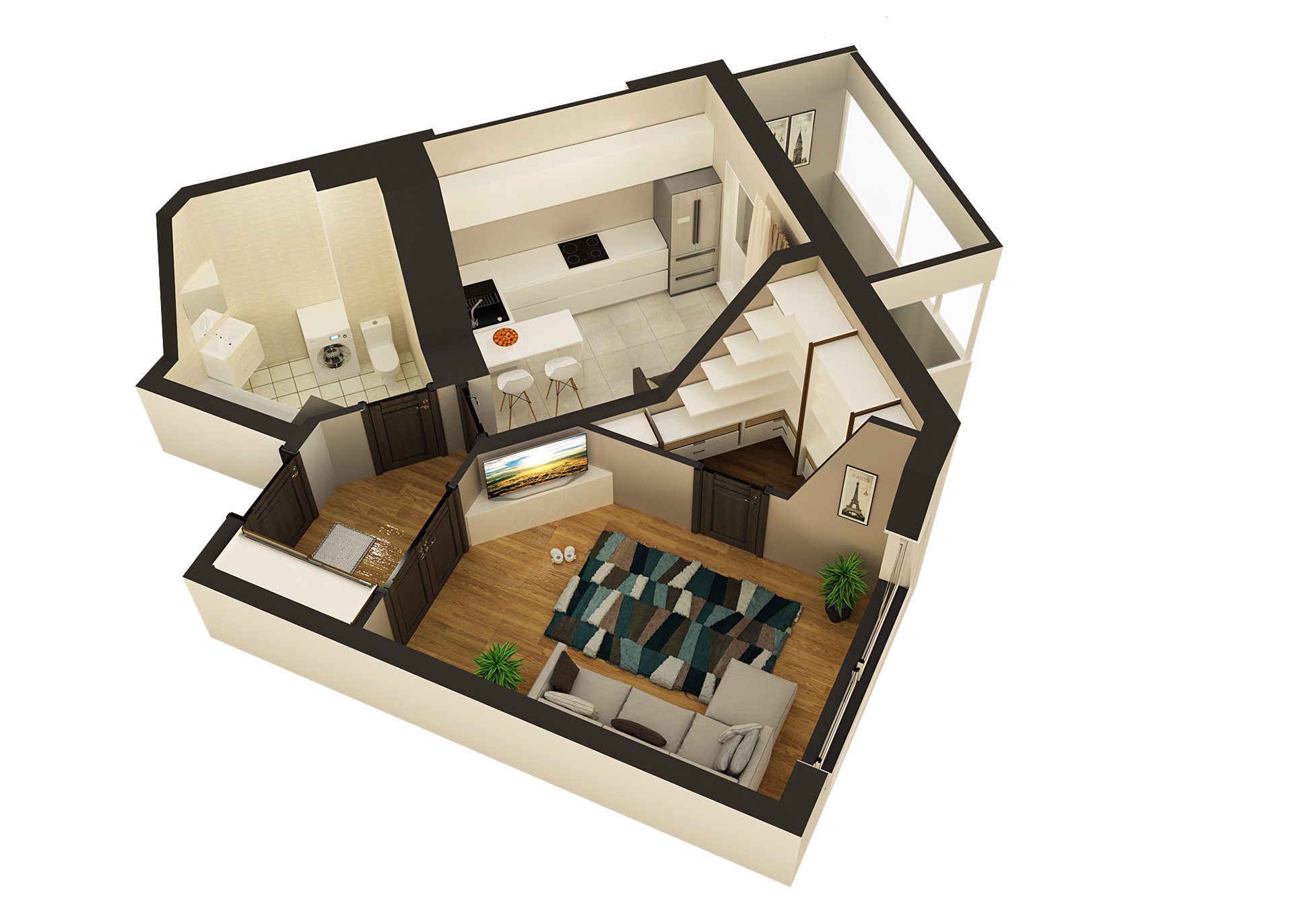 Планировка 1 комнатной квартиры 3d