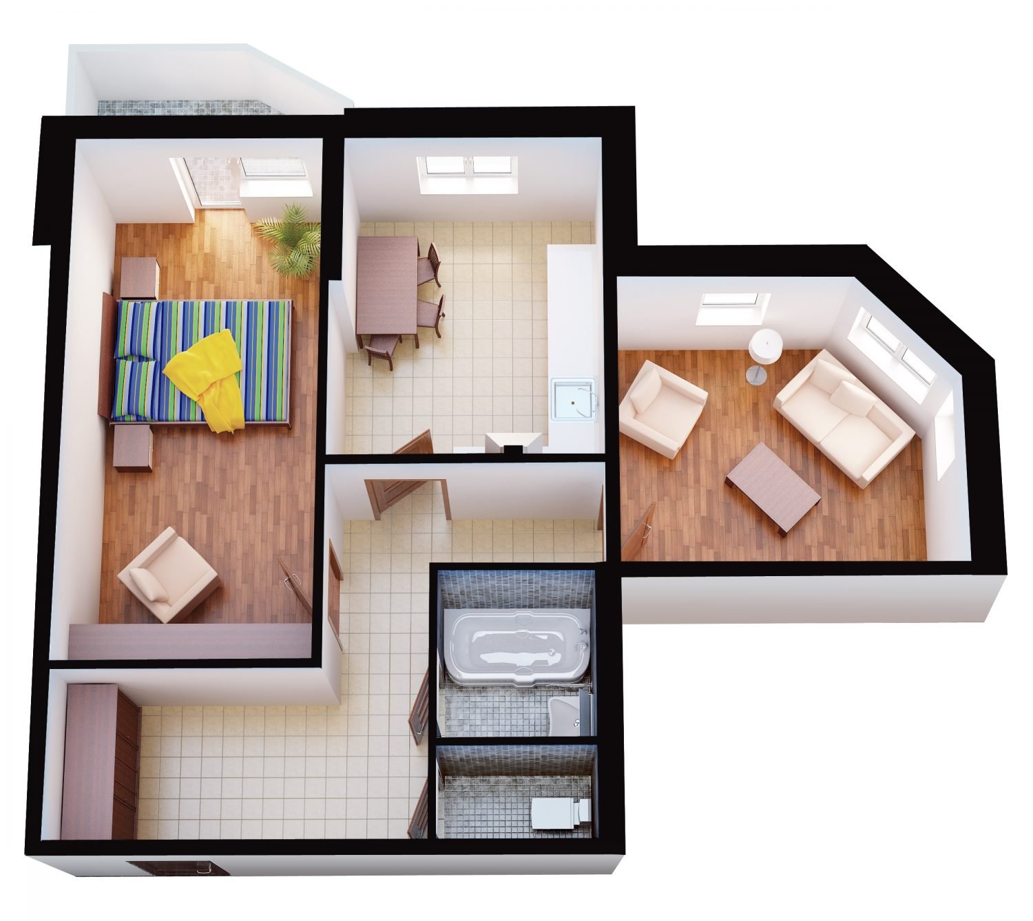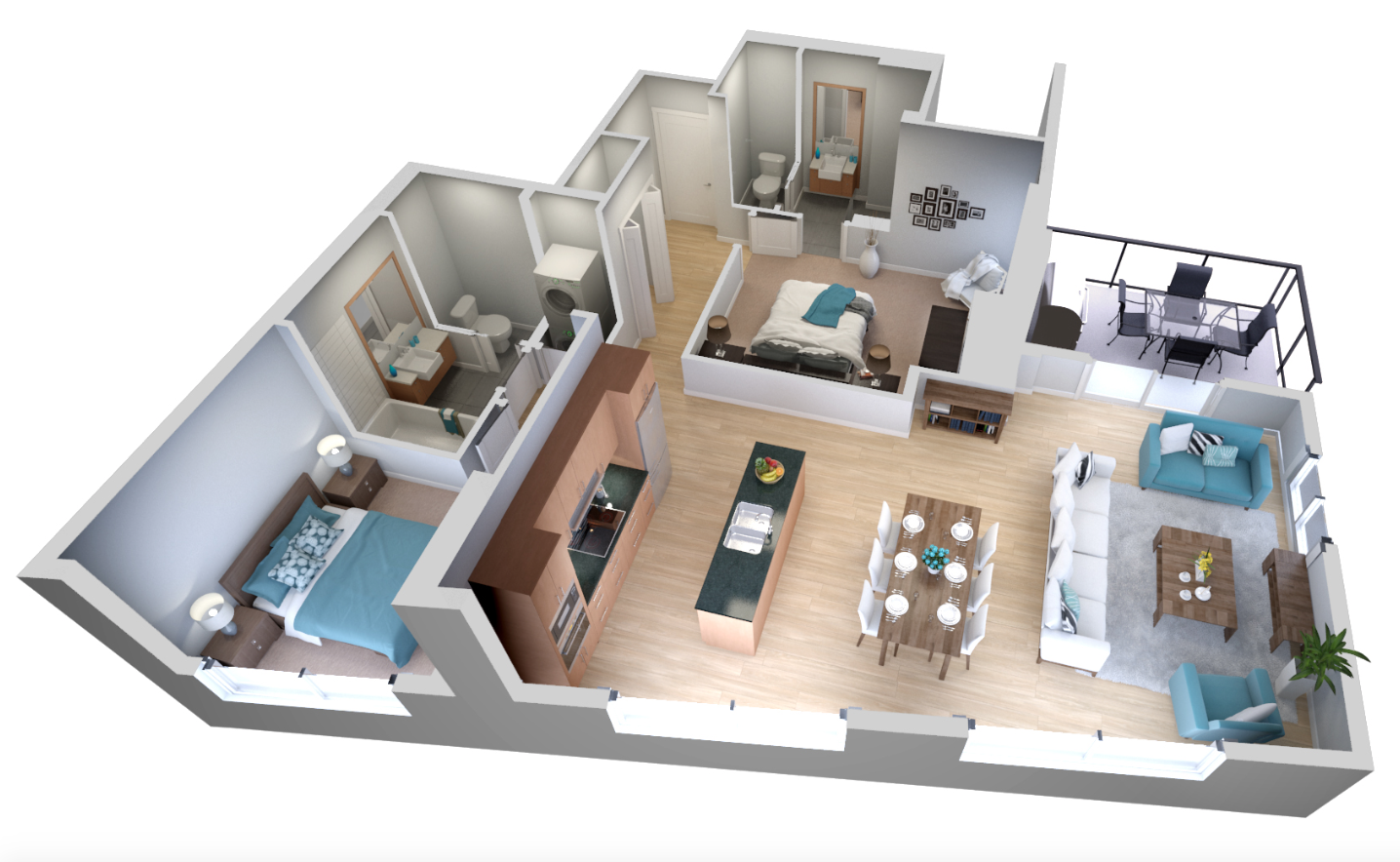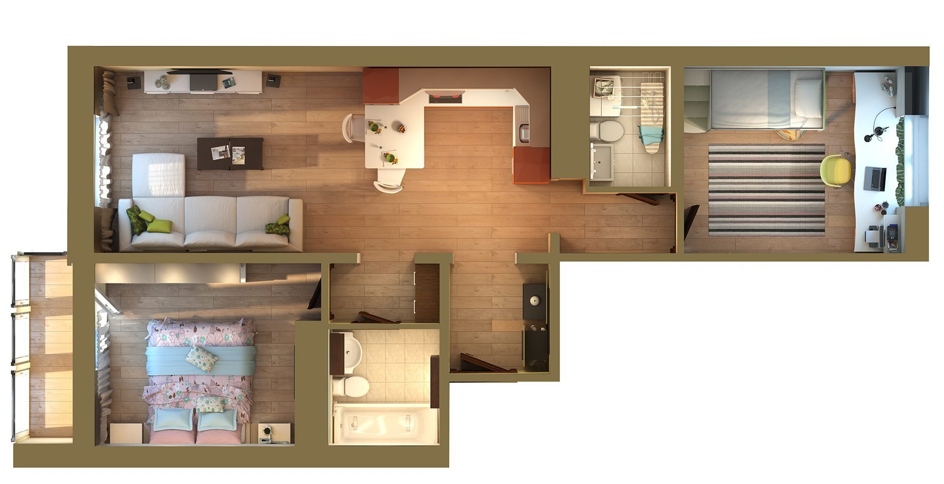 Планировка 2-х комнатной квартиры 3д