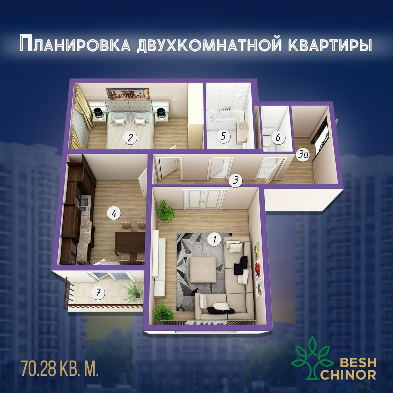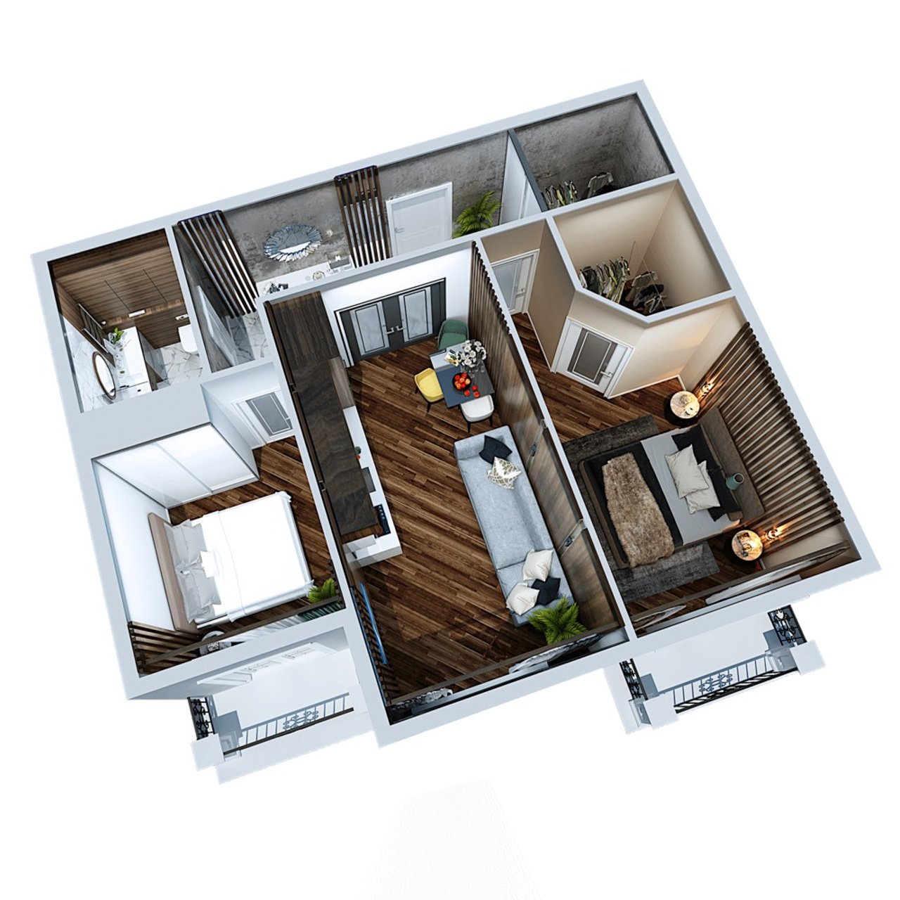 3д планировка двухкомнатной квартиры с лоджиями