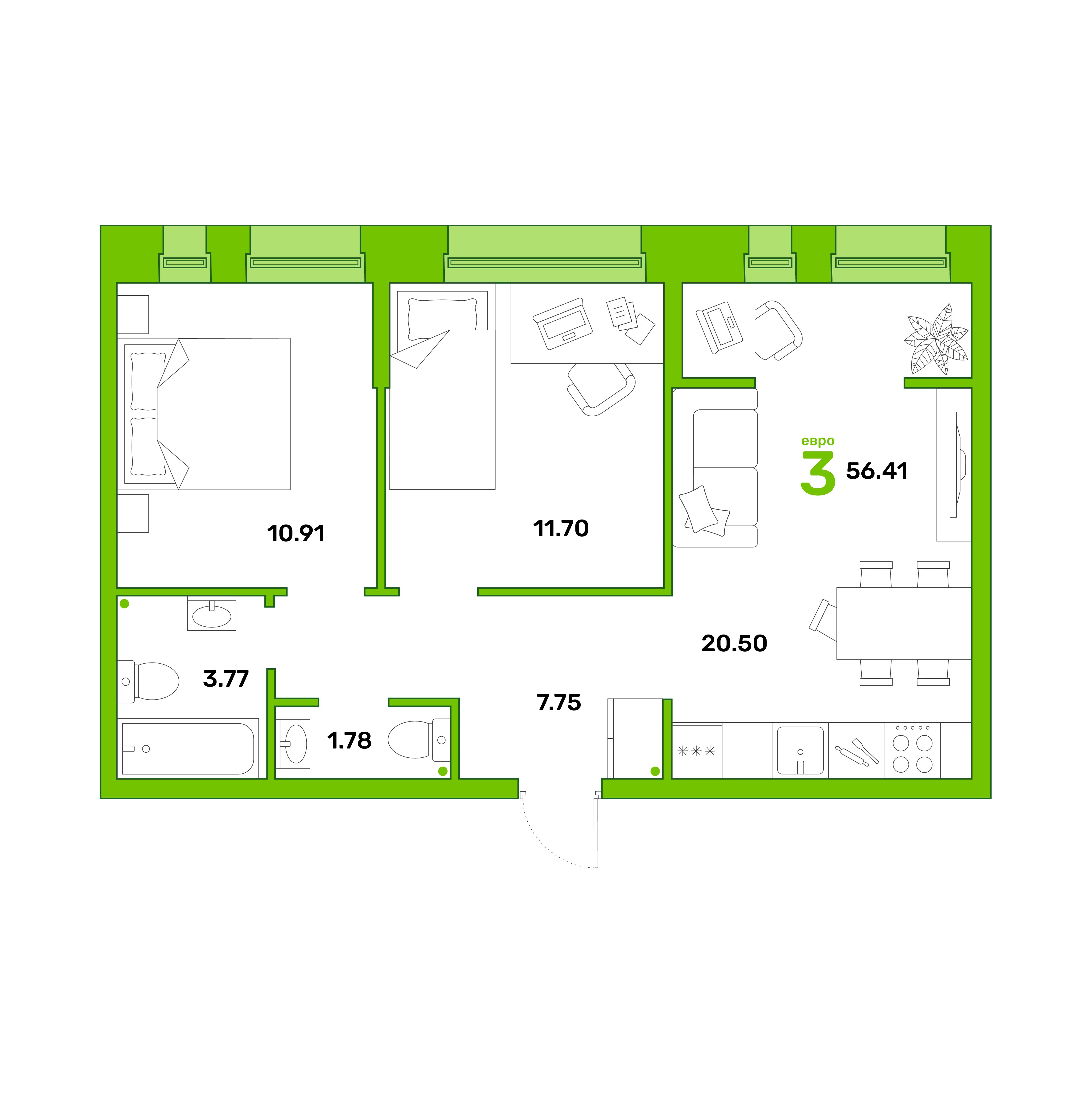 Планировка пик евротрешка 58м