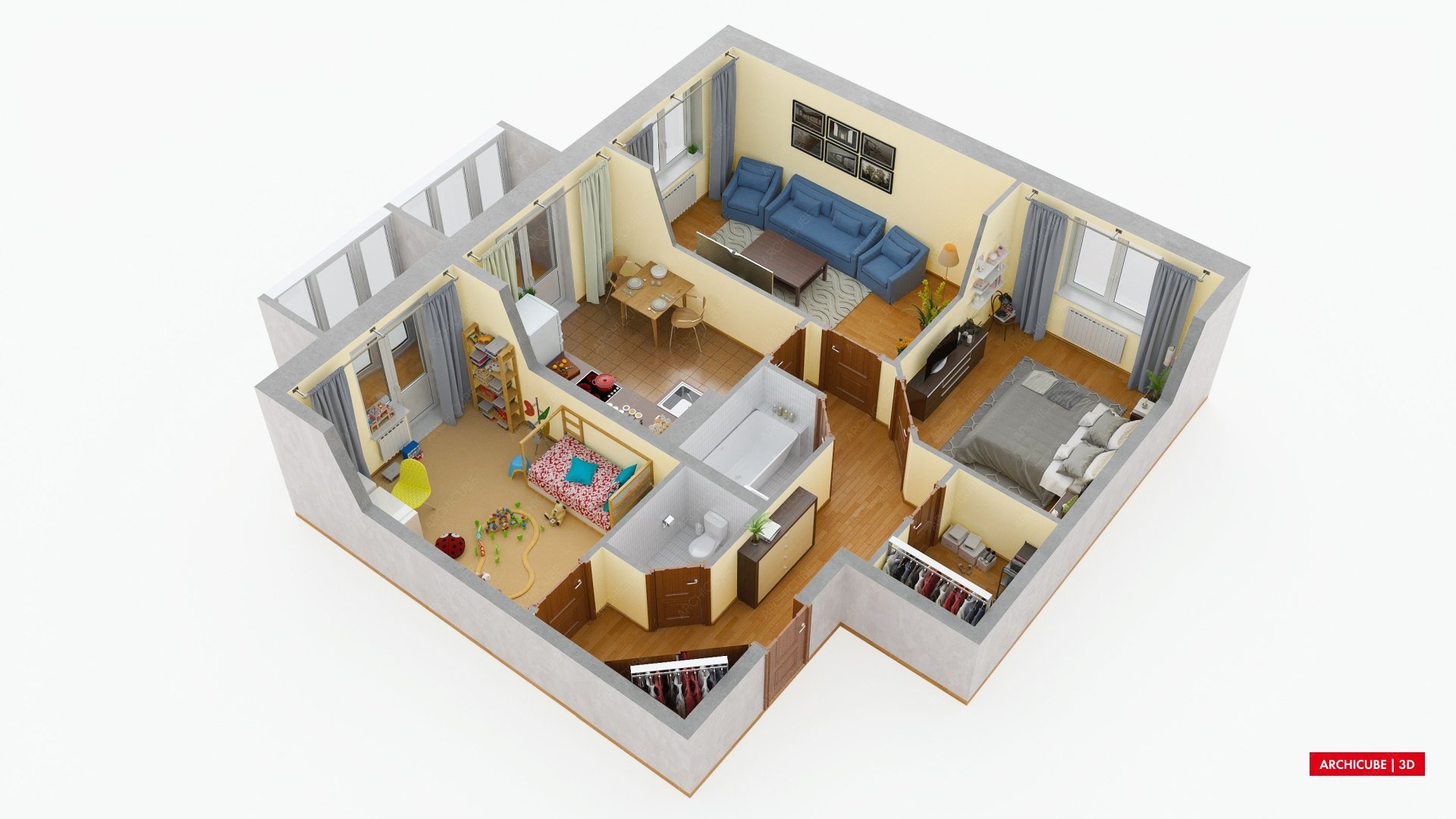 3д планировка 3 комнатной квартиры