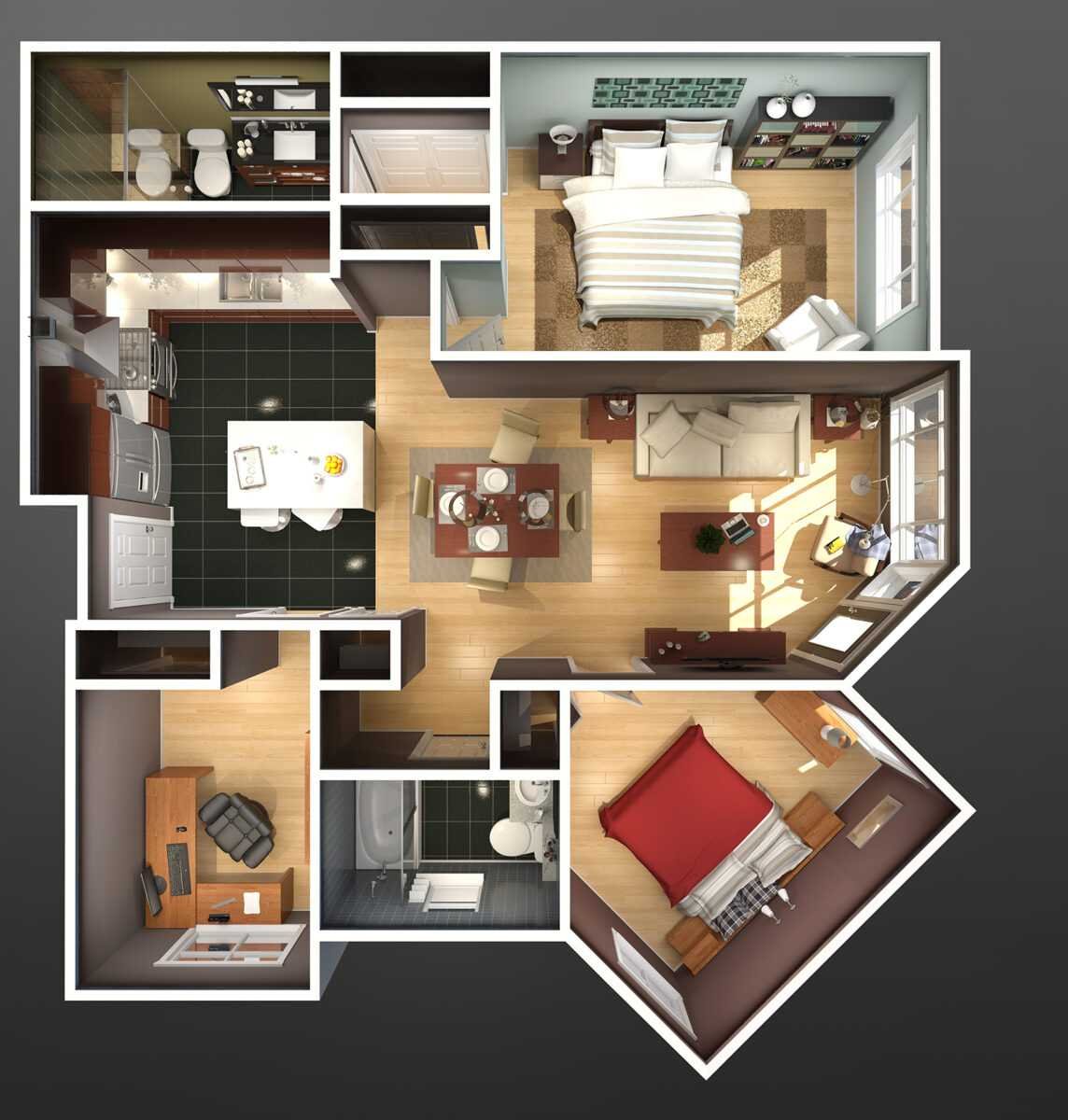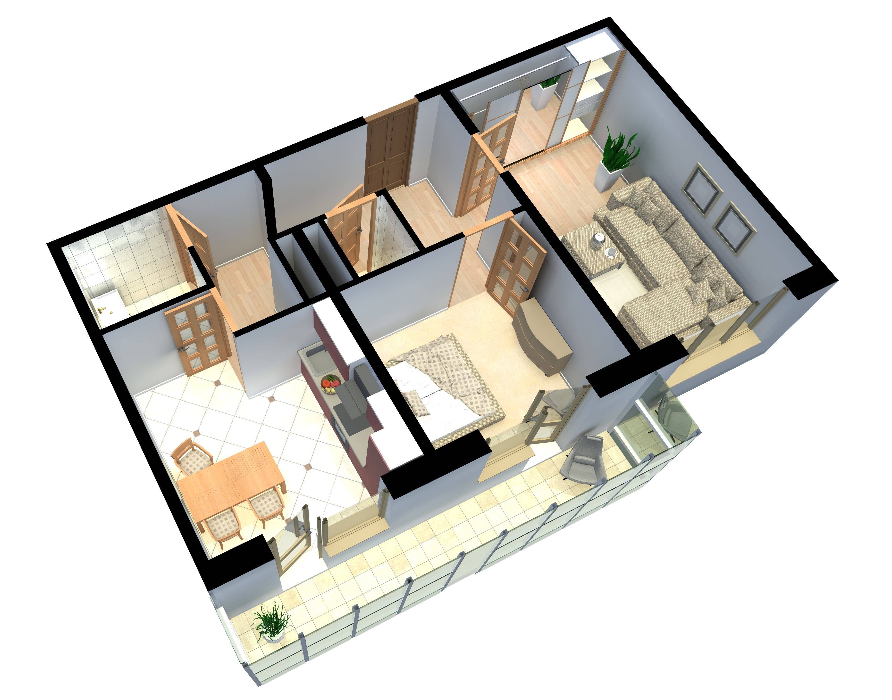 3d планировка двухкомнатной квартиры