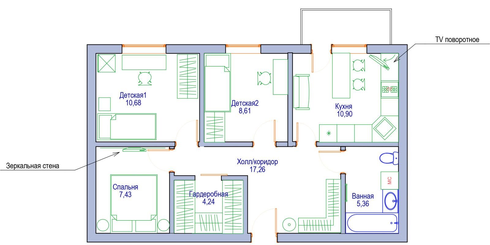 Трешка 80 кв м планировка