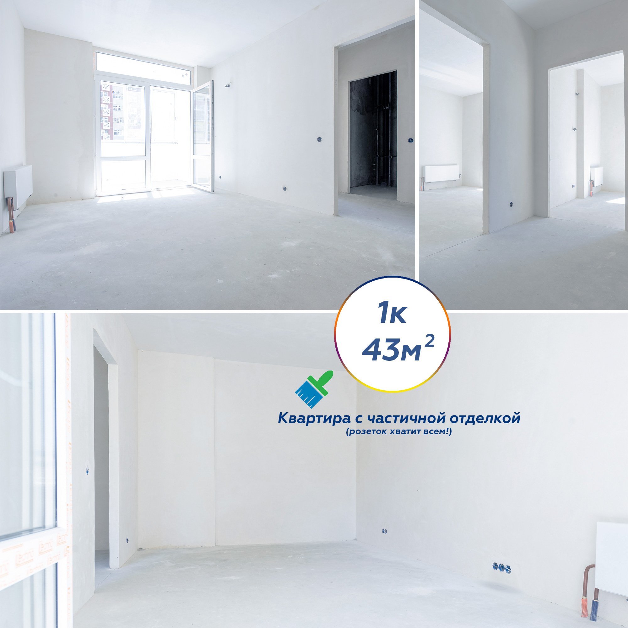 Предчистовая отделка студии 24 м2